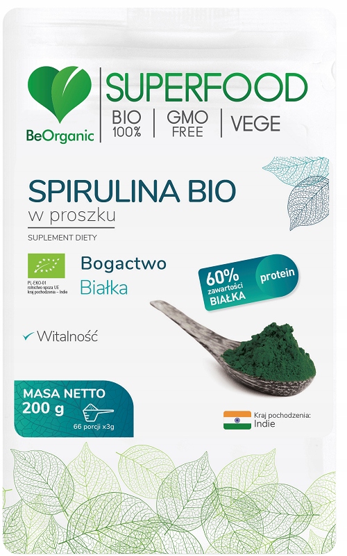 БІО-порошок BeOrganic Spirulina — це 100% органічна спіруліна. Це означає, що для вирощування спіруліни на інспектованому USFDA підприємстві в Індії використовуються лише органічні інгредієнти та методи.