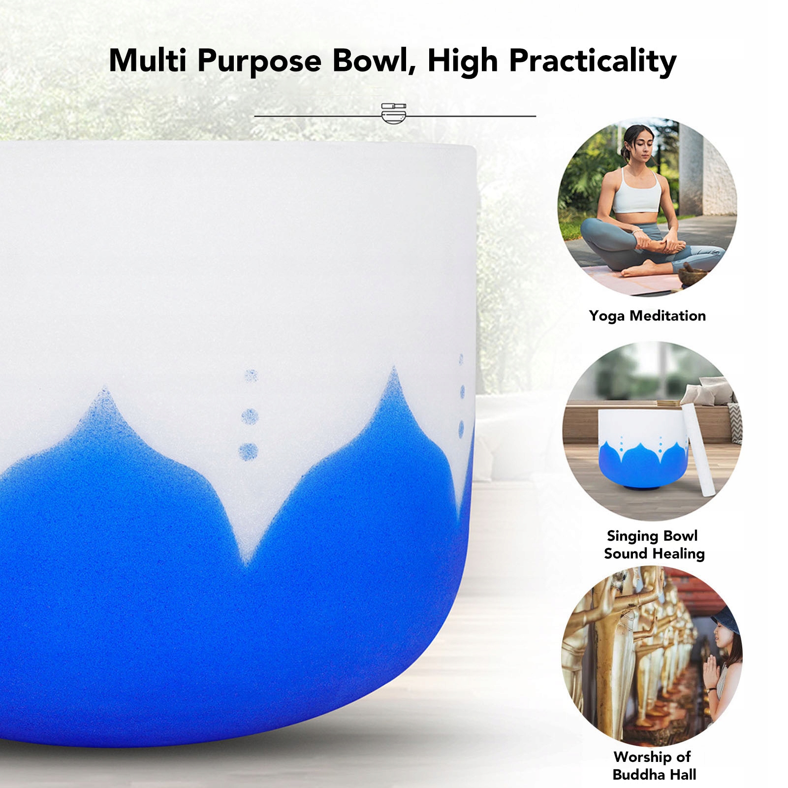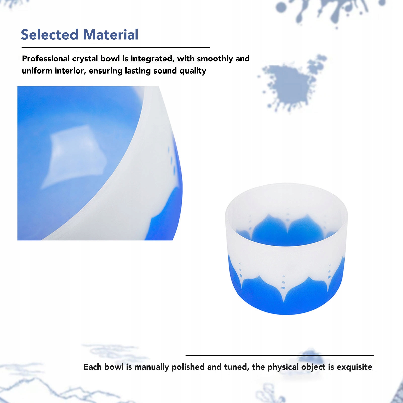 Співаюча чаша з візерунком блакитного лотоса, матовий кварцовий кристал, співаюча чаша для медитації йоги, що зцілює звук, 12 дюймів C Note
