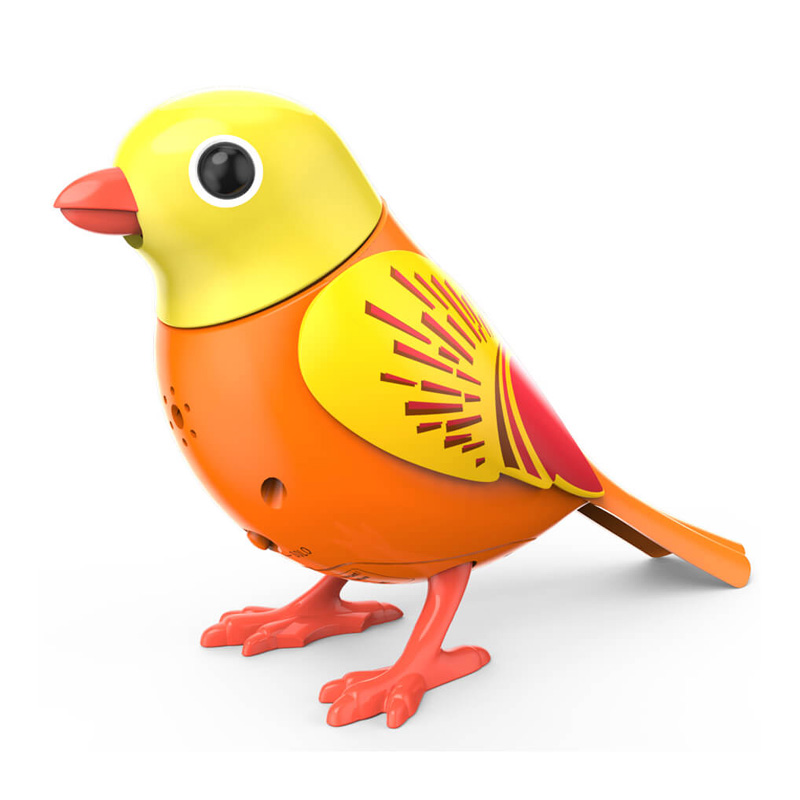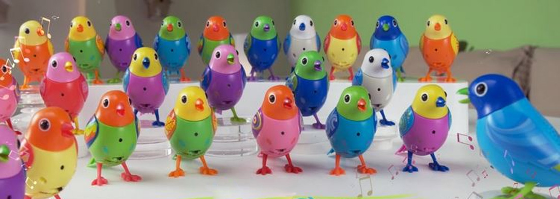 Співає соло. Просто свистніть/дуньте, і він заспіває/щебетає (доступно понад 20 пісень і щебетань!). Вона ще й у хорі співає! Виберіть одну пташку, яка буде керівником хору, решта співатимуть разом автоматично як гурт. Не забувайте встановлювати перемикачі в положення «Хор», тоді пташки чарівним чином з’єднаються та співатимуть разом.Також можна керувати пташкою за допомогою телефону! Просто завантажте відповідний додаток.