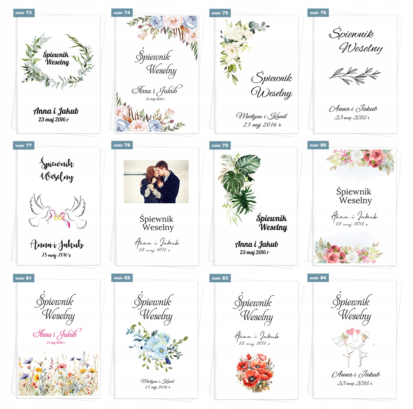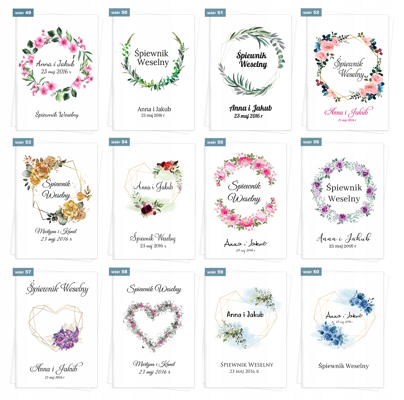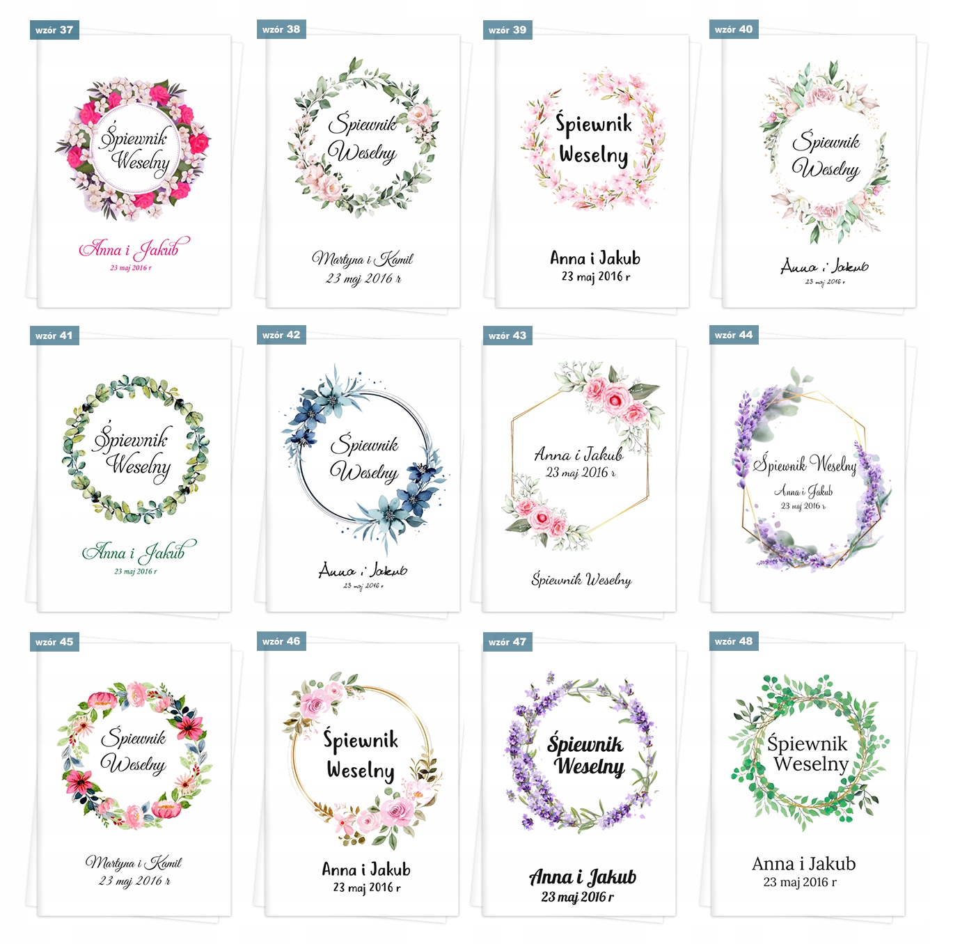 - Імена та дата, наприклад, Анна та Каміл, 22 травня 2019