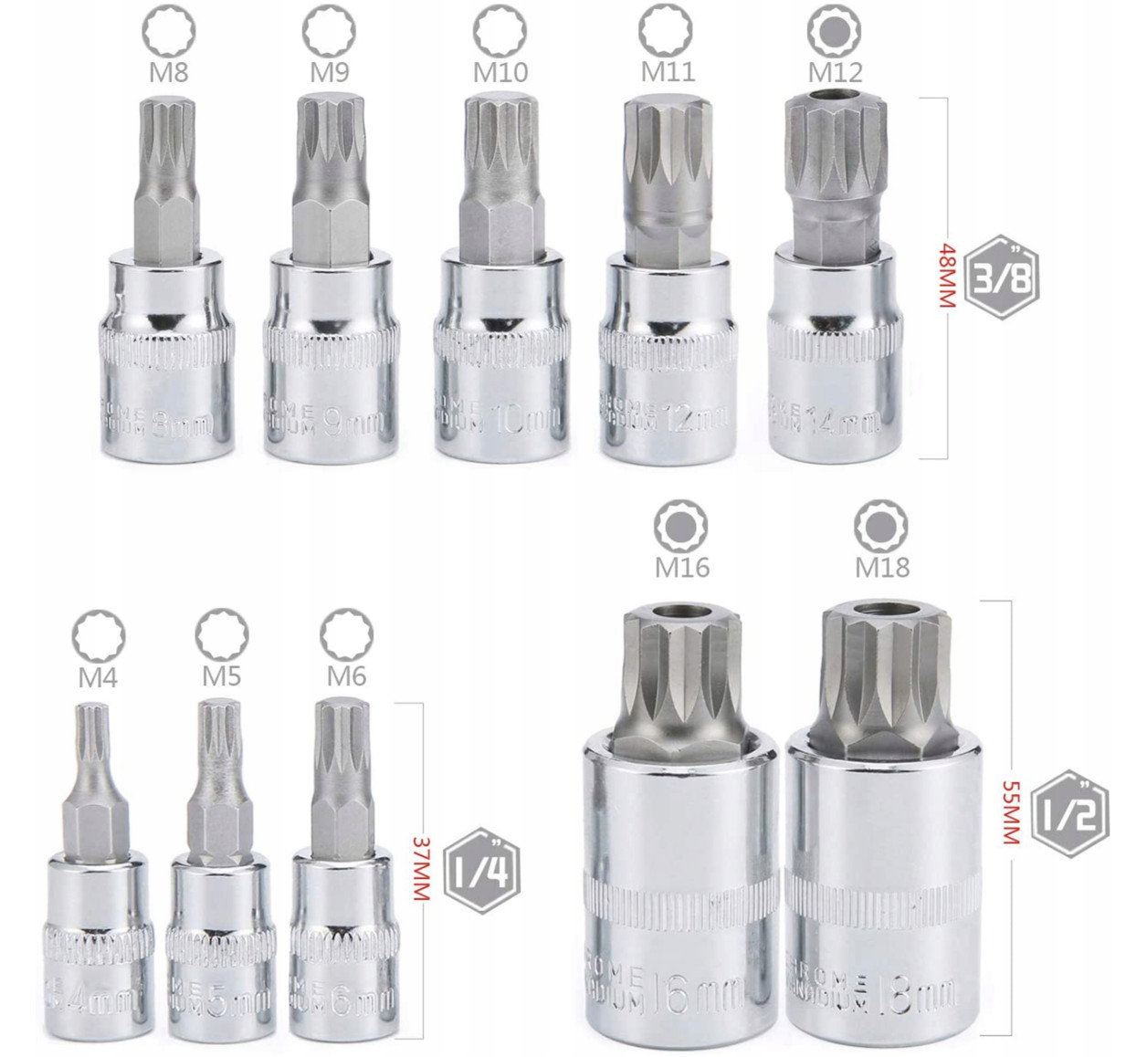 Spline 1/4 3/8 1/2 M4-M18 XN 10 Набір елементів COVE