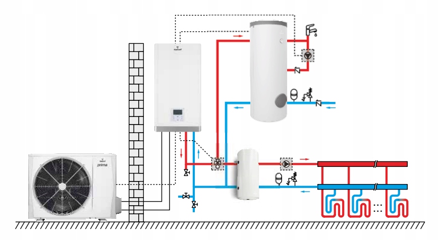 Тепловий насос Prima 8GT обладнаний додатковим нагрівачем потужністю 3 кВт. У надзвичайних ситуаціях або при температурах нижче -15°C буває, що для економії роботи теплового насоса доцільно використовувати нагрівачі, які підтримують підготовку гарячої води для центрального опалення або гарячого водопостачання.