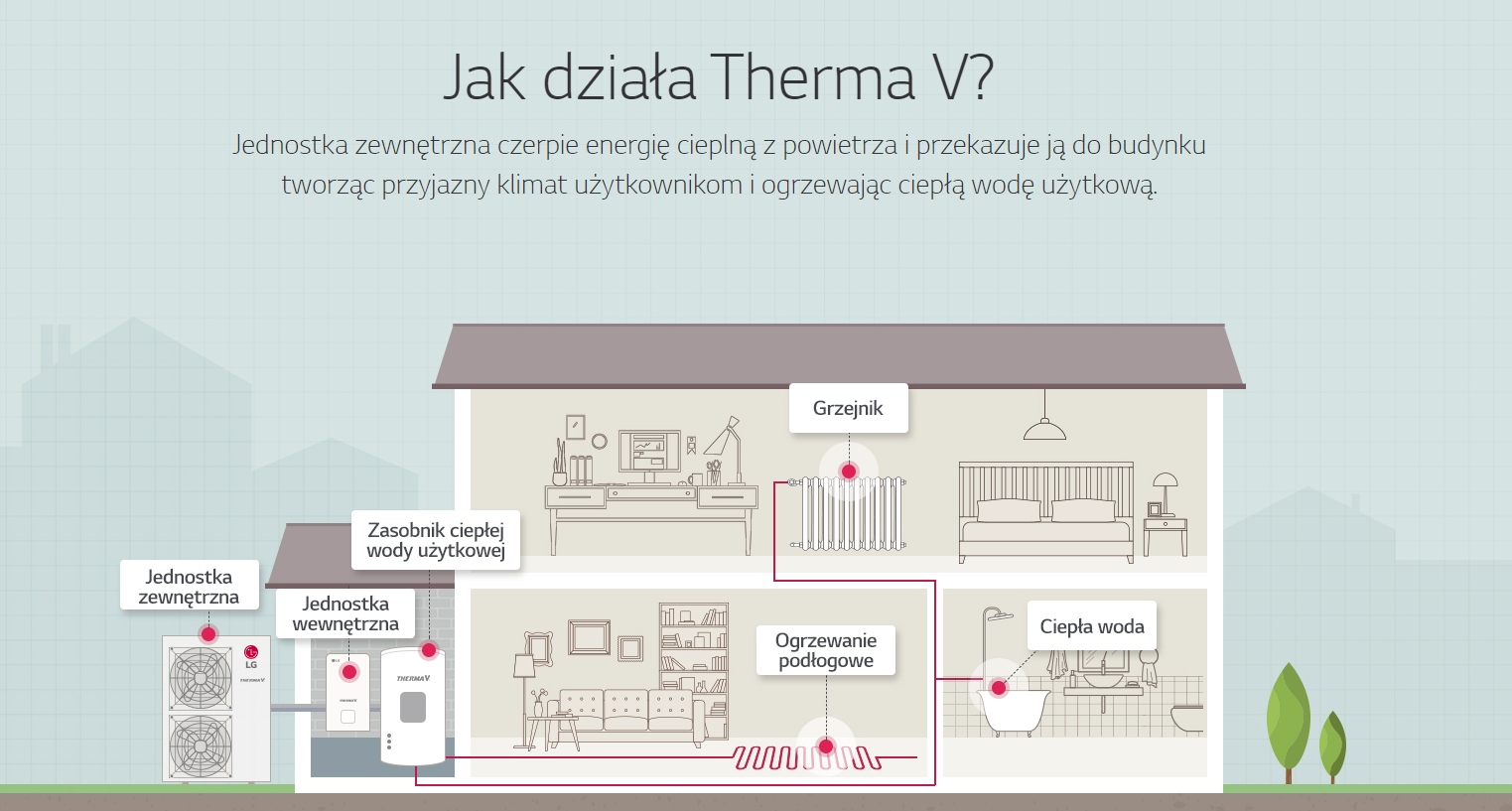 THERMA V від LG — це повітряно-водяний тепловий насос, розроблений спеціально для нових і модернізованих будинків, враховуючи вдосконалене опалення LG технологія та енергозбереження.