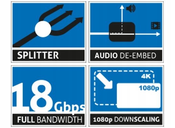 2x4 HDMI 2.0 4K UltraHD 60Hz 18Gbps Splitter із масштабуванням і вилученням звуку