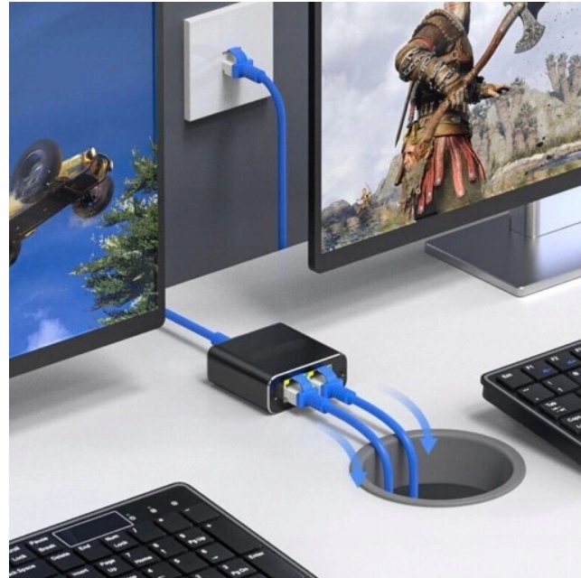 Сплітер RJ45 Ethernet має два виходи з одного мережевого кабелю, і швидкість передачі кожного може досягати до 1000 Мбіт/с.