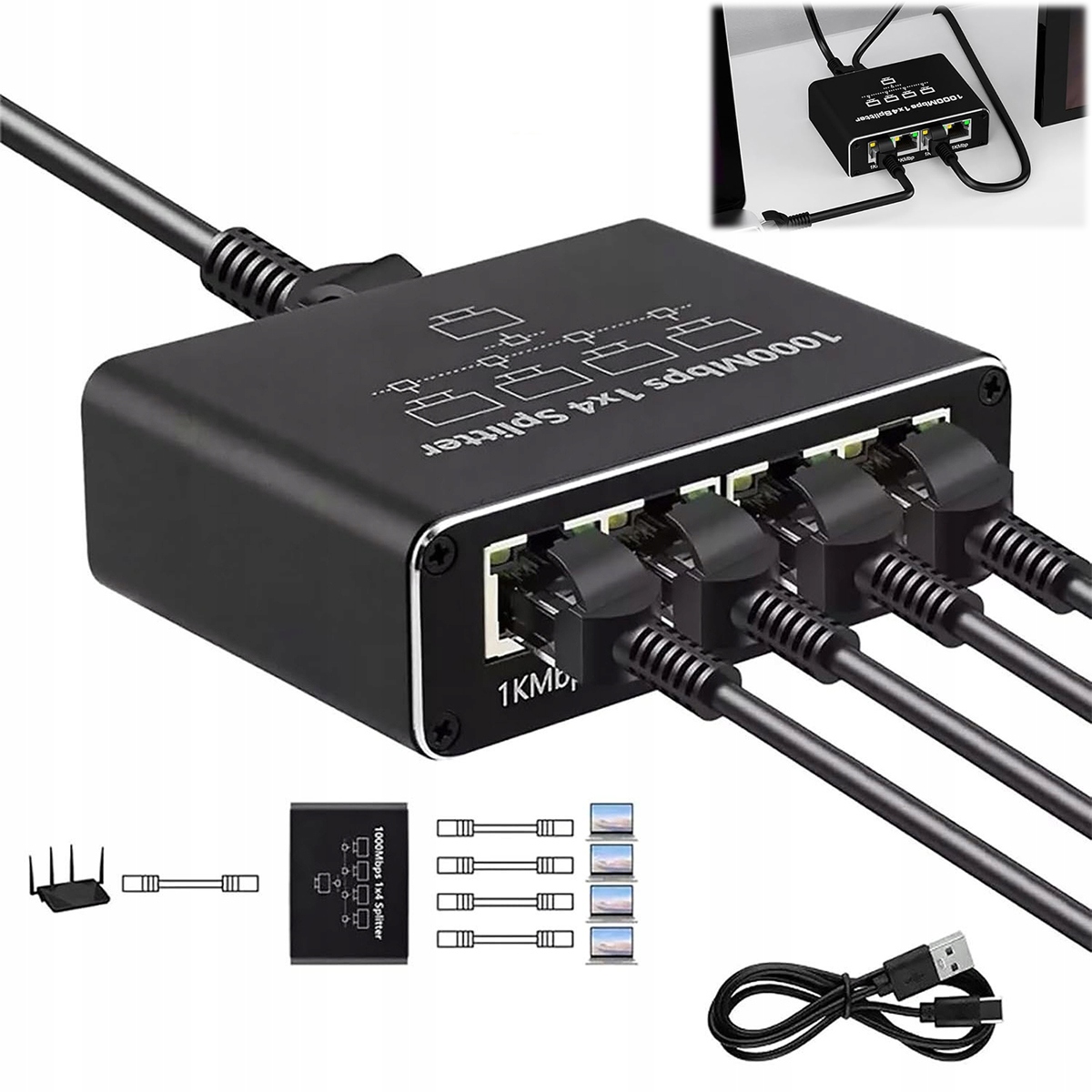 🔎📶1000 Мбіт/с комутатор LAN Splitter для Інтернету з 4 гігабітними портами Ethernet🔎📶
