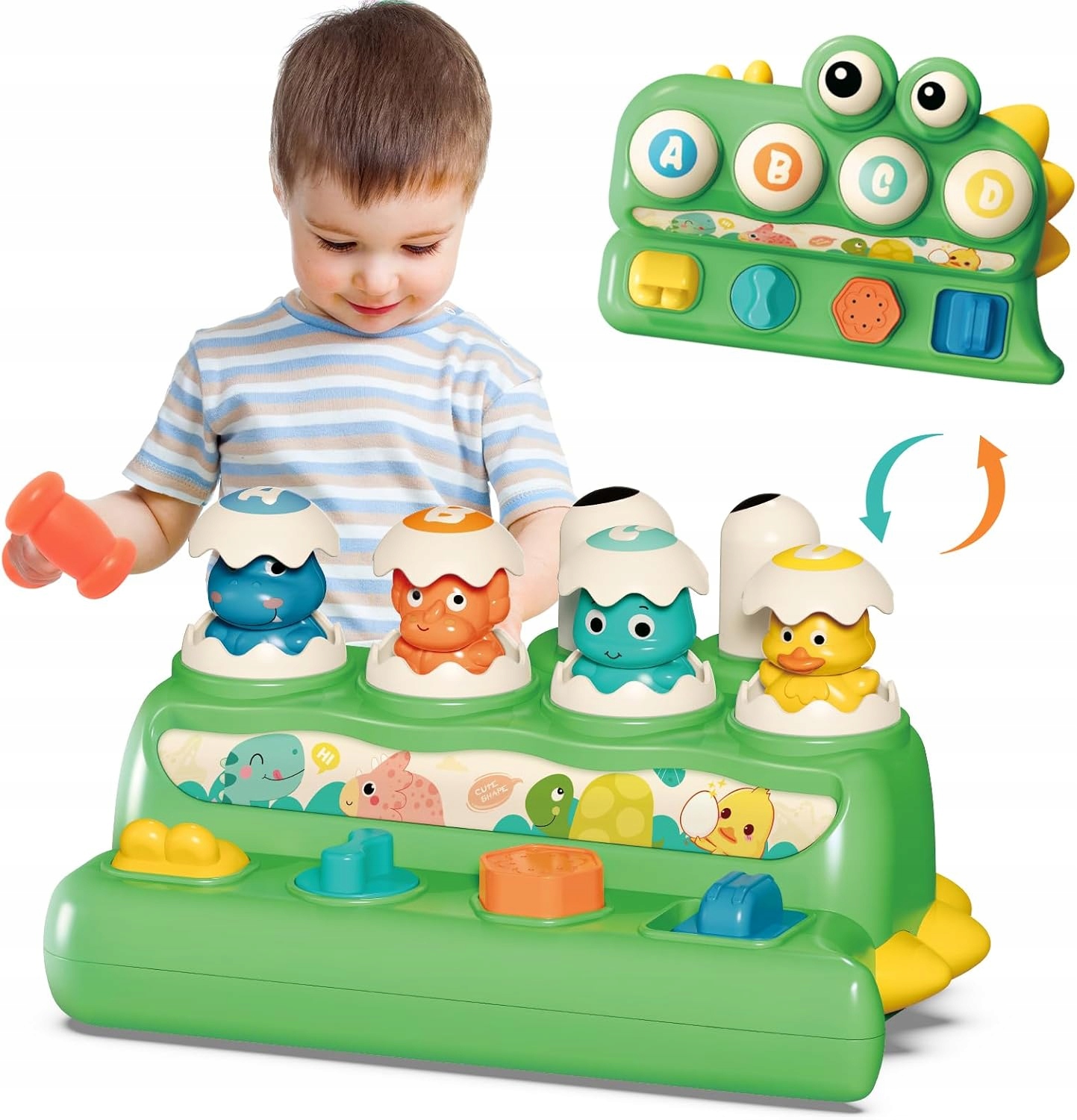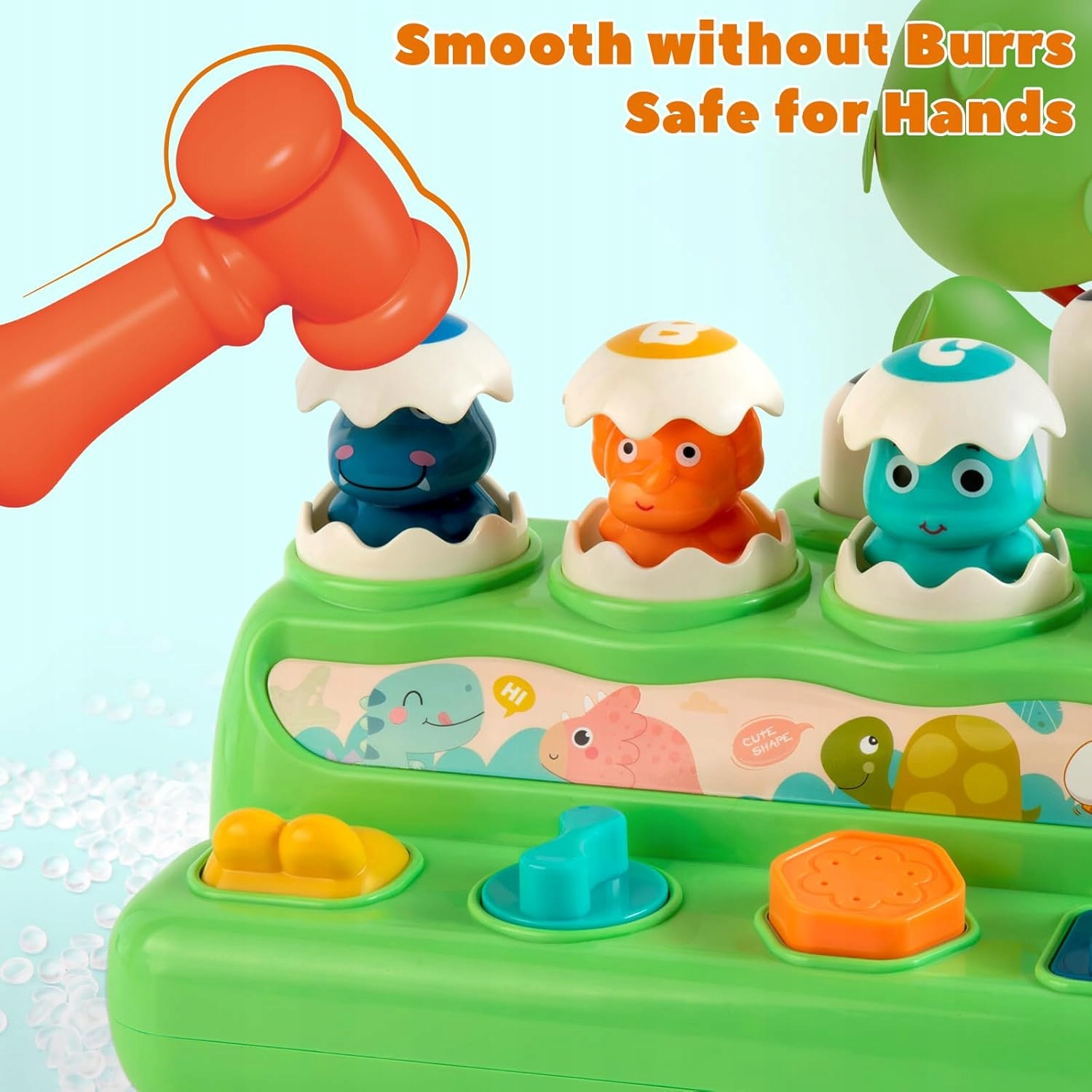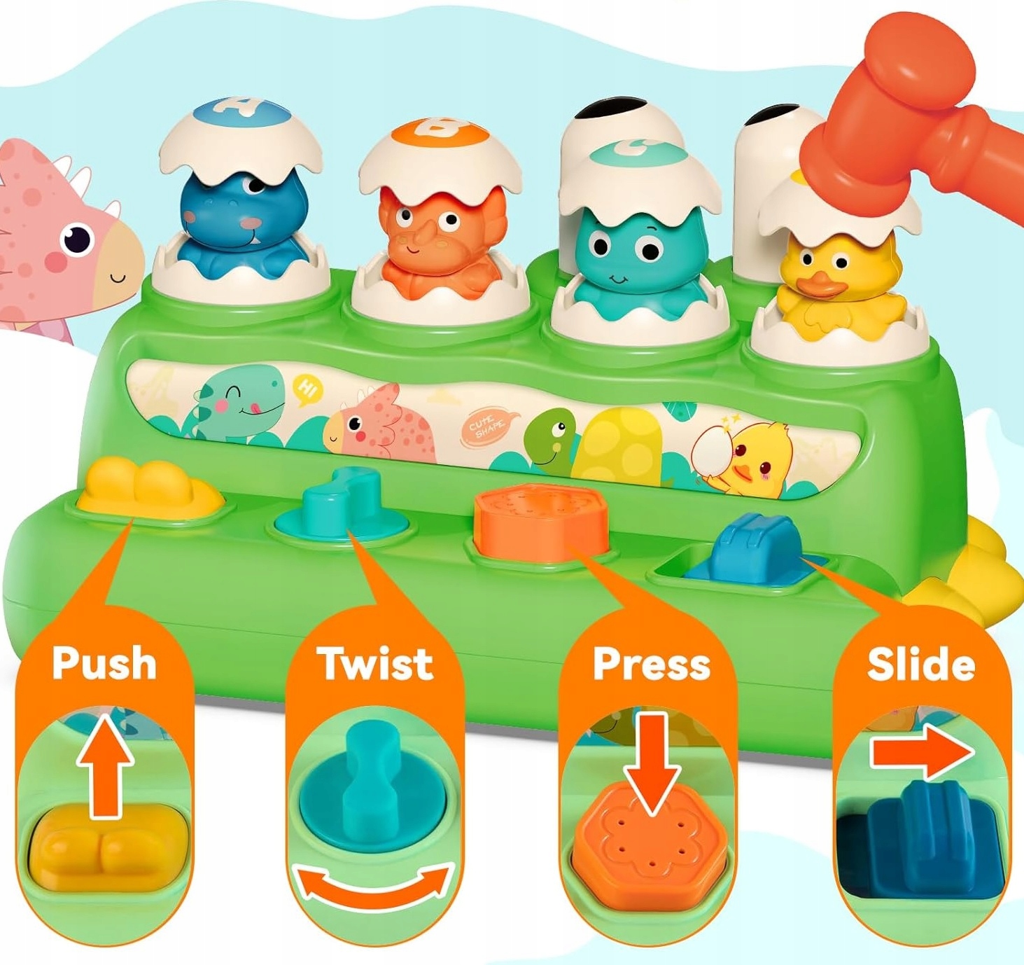 - дитині - дружньо і легко для маленьких рук: Кнопки легко переміщуються, натискають, перемикаючи або повертають. Спливаючі вікна підтримують як ручну, так і візуальну спритність . Дитина вчиться та розважає одночасно. Іграшка після натискання або повороту заданої форми дозволяє виглядати різних динозаврів. Це дозволяє дітям впроваджувати світ природи під час вивчення сприйнятливості.