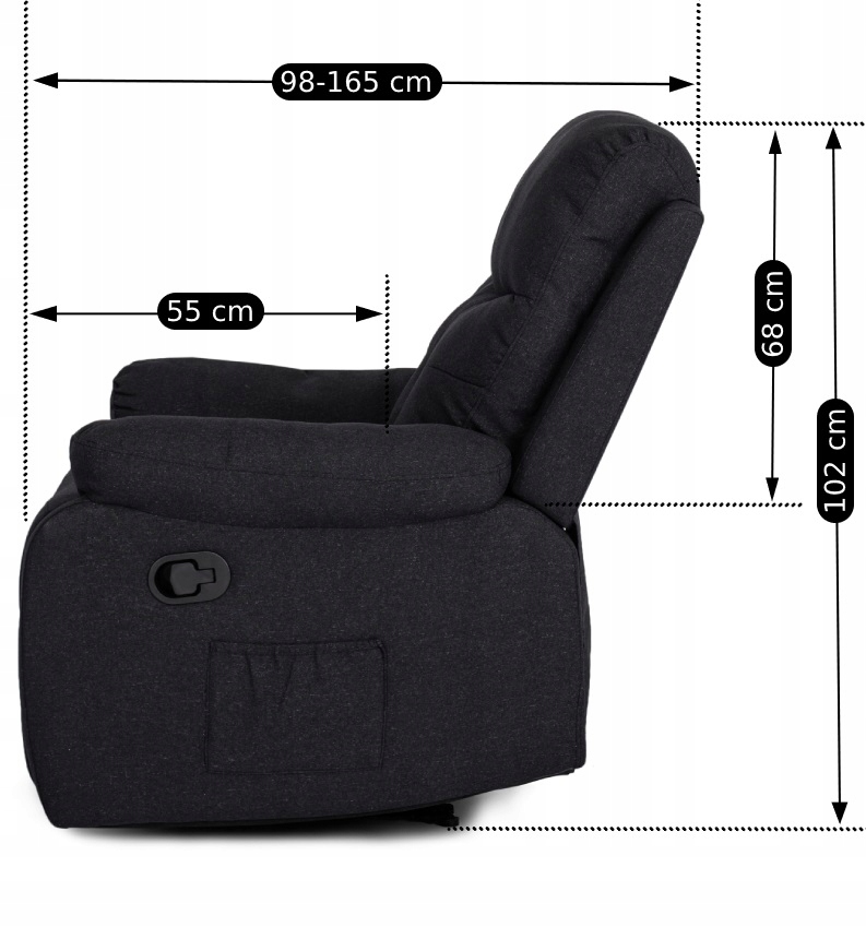 ✅ Потягніть чорнуручку з правого боку крісла, щоб розкласти спинку та підняти підніжку.