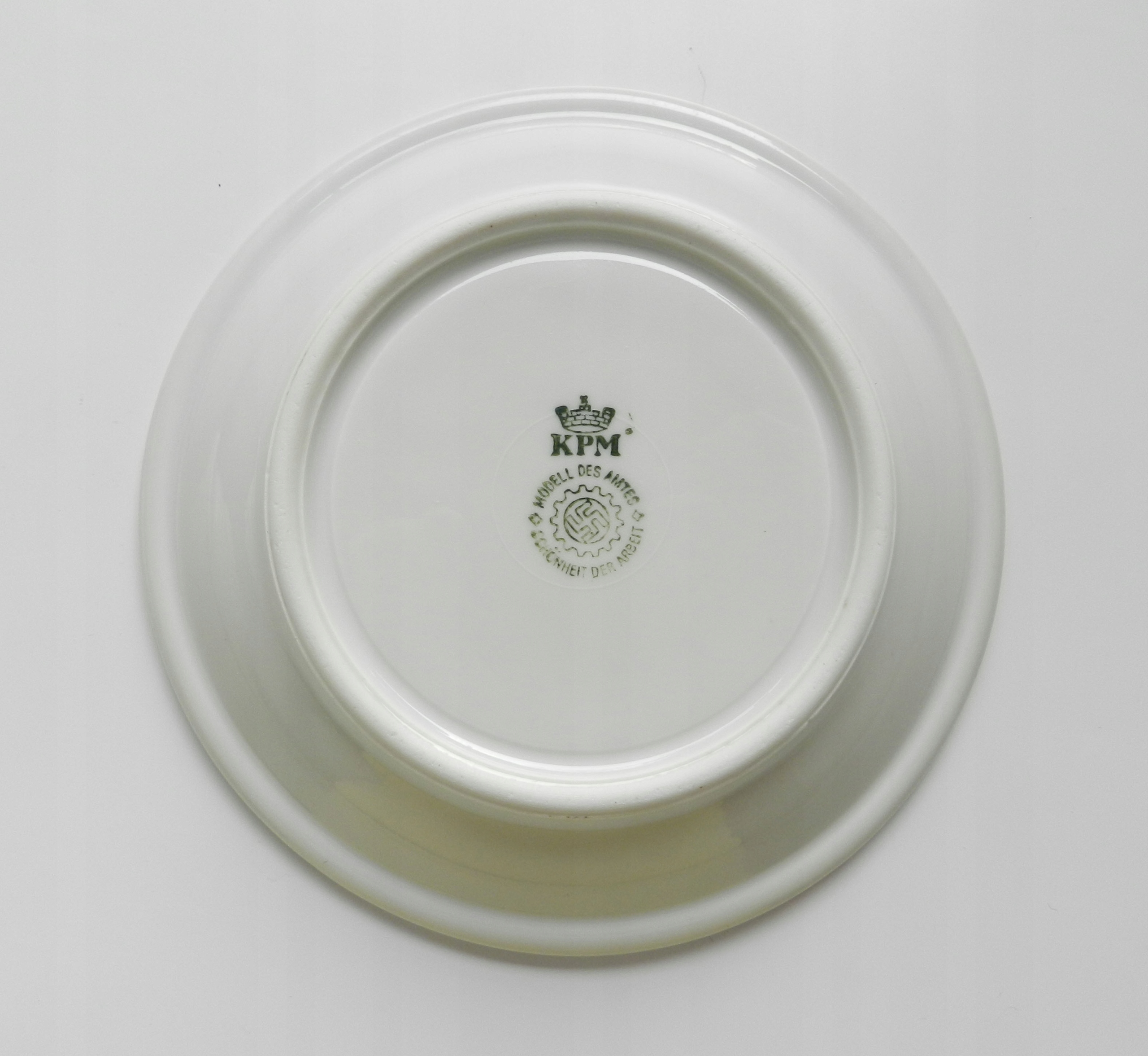 Предмет аукціону оригінальна німецька чашка-блюдце DAF. Deutsche Arbeitsfront (DAF, Німецький Трудовий Фронт) - німецька організація, що діє під наглядом NSDAP. На емалі видно звичайні ознаки використання у вигляді подряпин і потертостей. Без тріщин і сколів. Виробник: KPM. Підглазурне маркування.