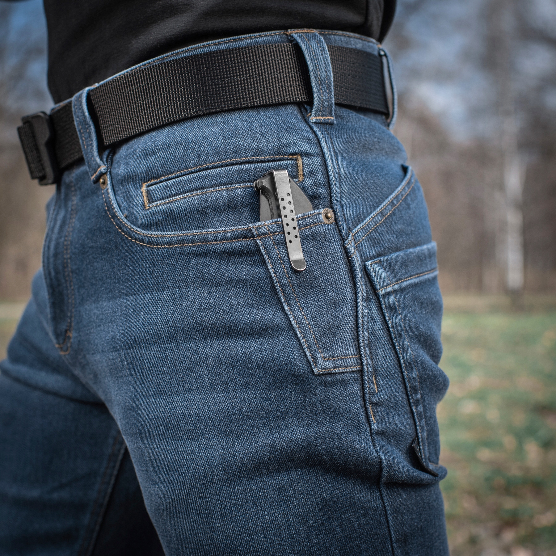 Класичний крій, доповнений непомітними деталями, які є невід'ємною частиною тактичних штанів, робить цю модель джинсових штанів зручною і практичною в повсякденному використанні. Джинсові штани виконані в стилі Regular Fit, одному з найпопулярніших видів штанів. Штани застібаються на верхній ґудзик у канадському стилі та на блискавку YKK.