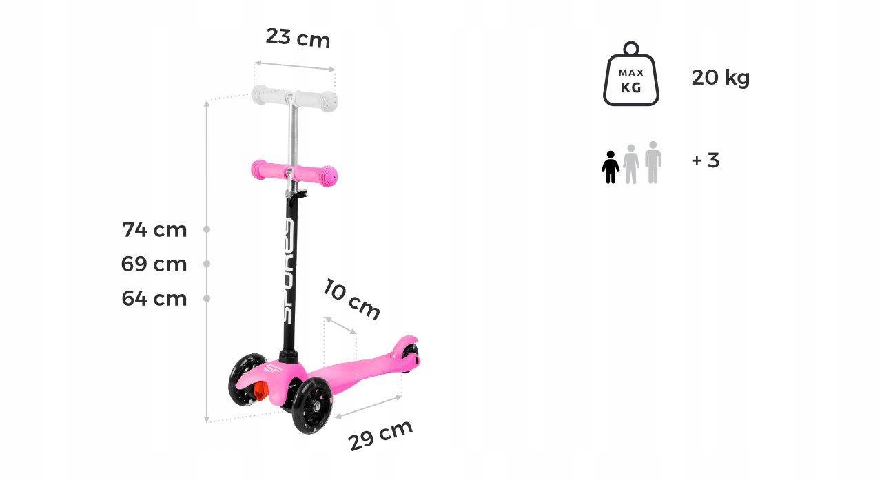 У Spokey ми встановлюємо високі вимоги до нашого обладнання. Особливо, коли мова йде про наших наймолодших користувачів! Три -колесний скутер балансу -ідеальне рішення для дітей, які просто роблять свої перші кроки у світі спорту. Три -колесний дизайн значно полегшує підтримку рівноваги. Виготовлені з легких, міцних матеріалів задовольнять навіть найвибагливіших малих користувачів. Ми знаємо, наскільки добре виділятися з раннього віку, саме тому ми платимо особливе значення оригінальному, вишуканому дизайну відповідно до останніх тенденцій. Скутери Funride призначені для дітей старше 2 років і вагою нижче 50 кг. Поліуретанові колеса, завдяки еластичності, стійкості до стирання та різній твердості, дозволяють насолоджуватися рухом на різних поверхнях. Безумовно, додаткова радість буде принесена світими колесами під час руху!