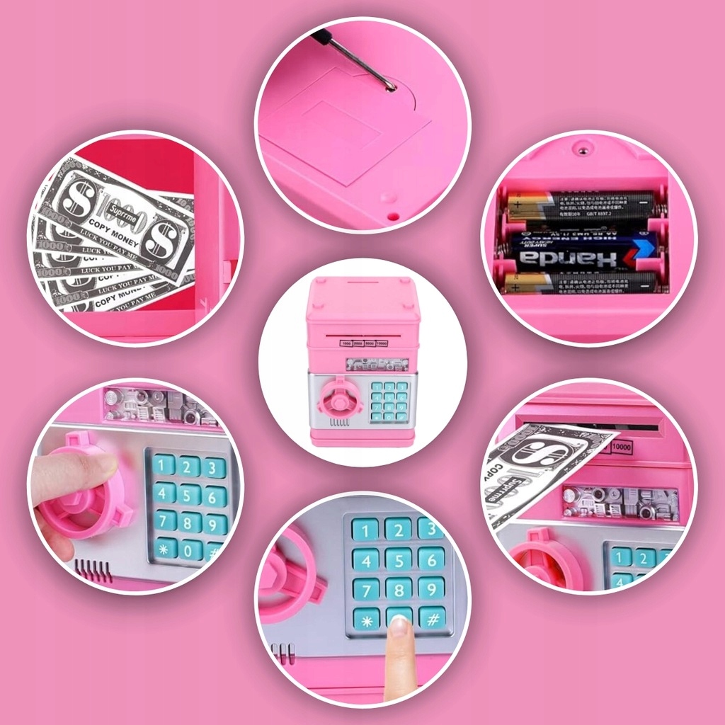 КОРБИНКА БЕЗПЕЧНИЙ БАНКОМАТ ДЛЯ ДІТЕЙ З КОДОМ ДОСТУПУ МОНЕТИ БАНКНОТИ РОЖЕВІ