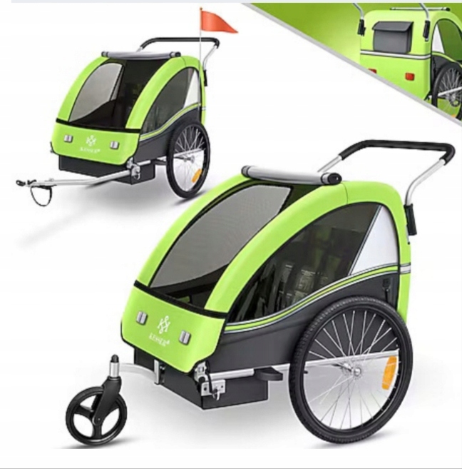 , оснащений 360 -градусним обертовим та заблокованим переднім колесом, ідеально спричиняє наслідки під час нерівних маршрутів. Ваша дитина не була б першою, яка під час пробіжки в спортивному трейлері Кессера співає і задовольняє себе. Жодна проблема-ця високоякісна вішалка забезпечує місце для 1-2 дітей з 18 місяців і витримує навантаження до 40 кг.