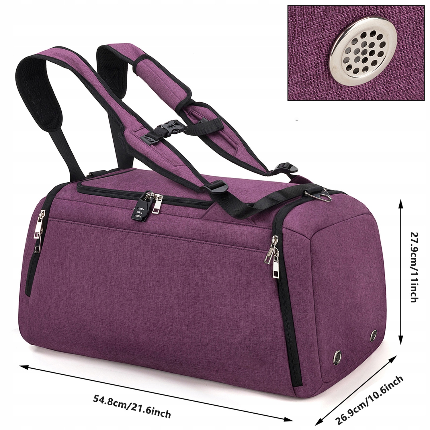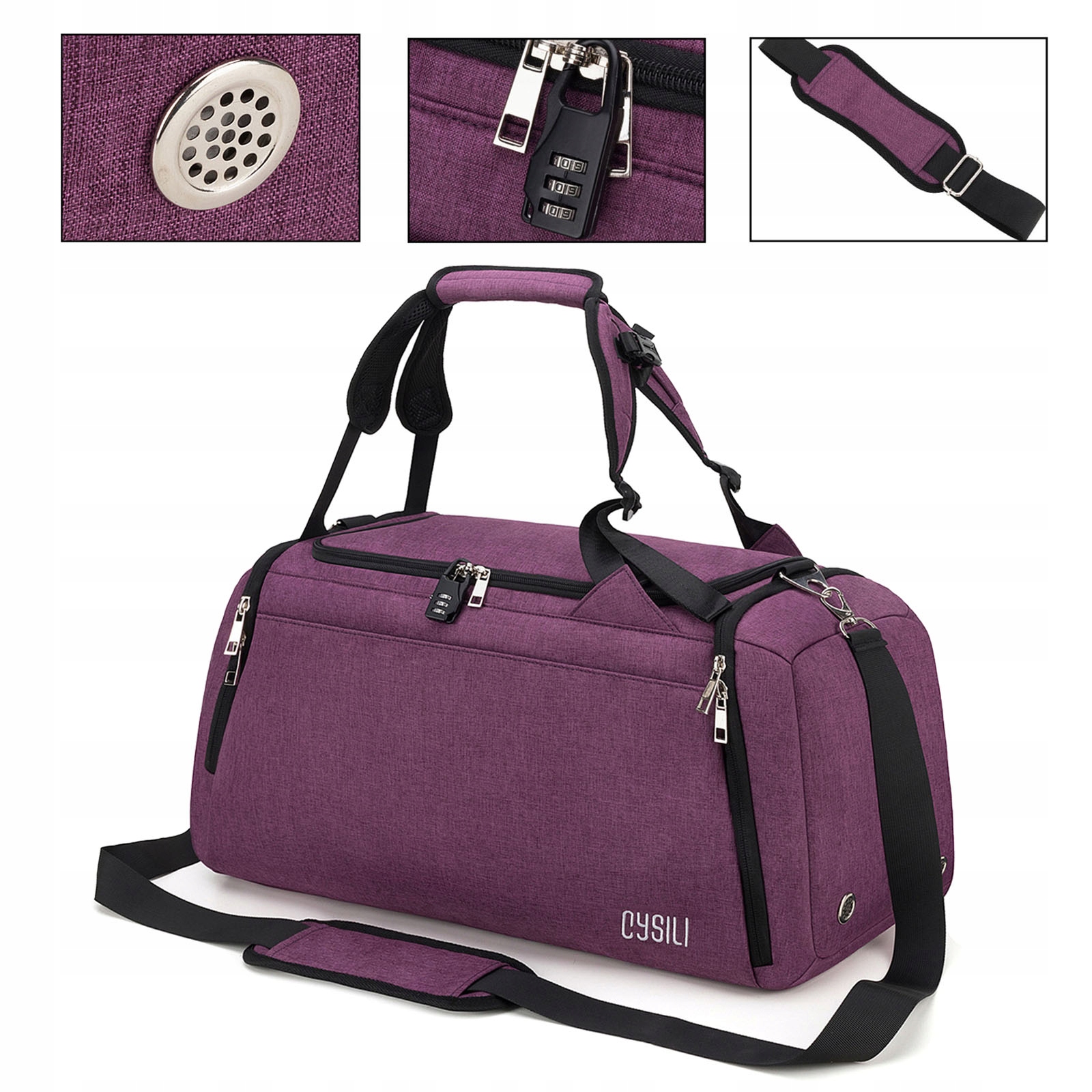 Бічна кишеня з окремим місцем для взуття або брудного одягу - з двома вентиляційними отворами 🌬️, які ефективно видаляють неприємні запахи.