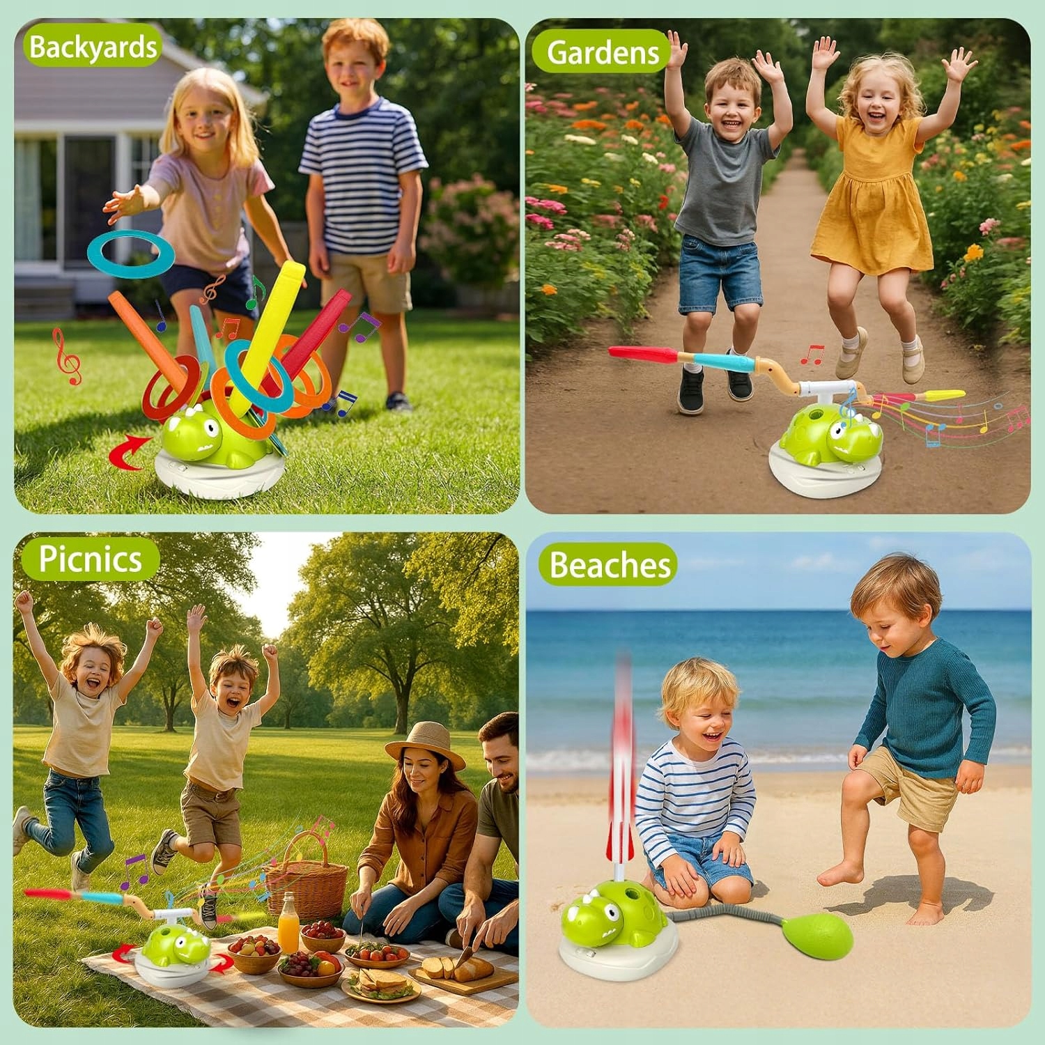 Заохочуйте свою дитину до активних ігор на свіжому повітрі! 🌳💪 Ця унікальна іграшка 3 в 1 поєднує в собі ракетну установку, гру з підкиданням кільця та скакалку з музикою для годин вправ, сміху та здорового змагання! 🎯🎶