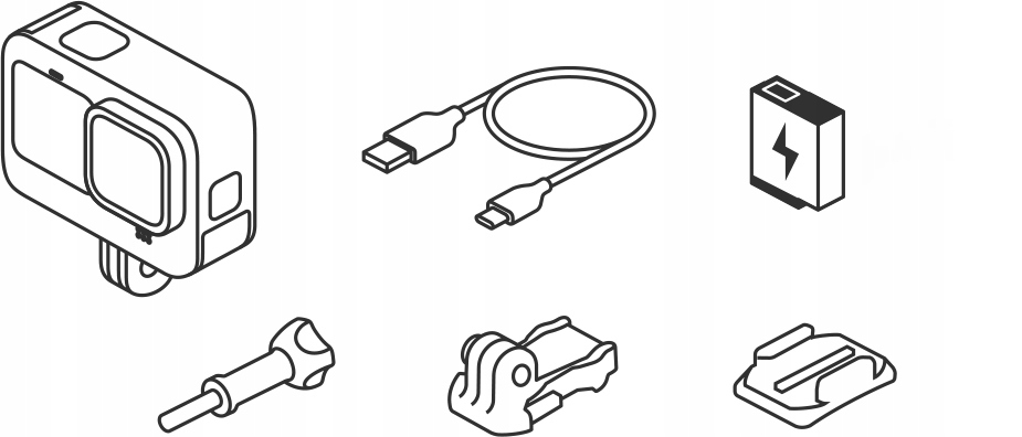 - Включає камеру HERO12 Black, батарею Enduro, вигнуте клейке кріплення, швидкий роз’єм, гвинт і кабель USB-C