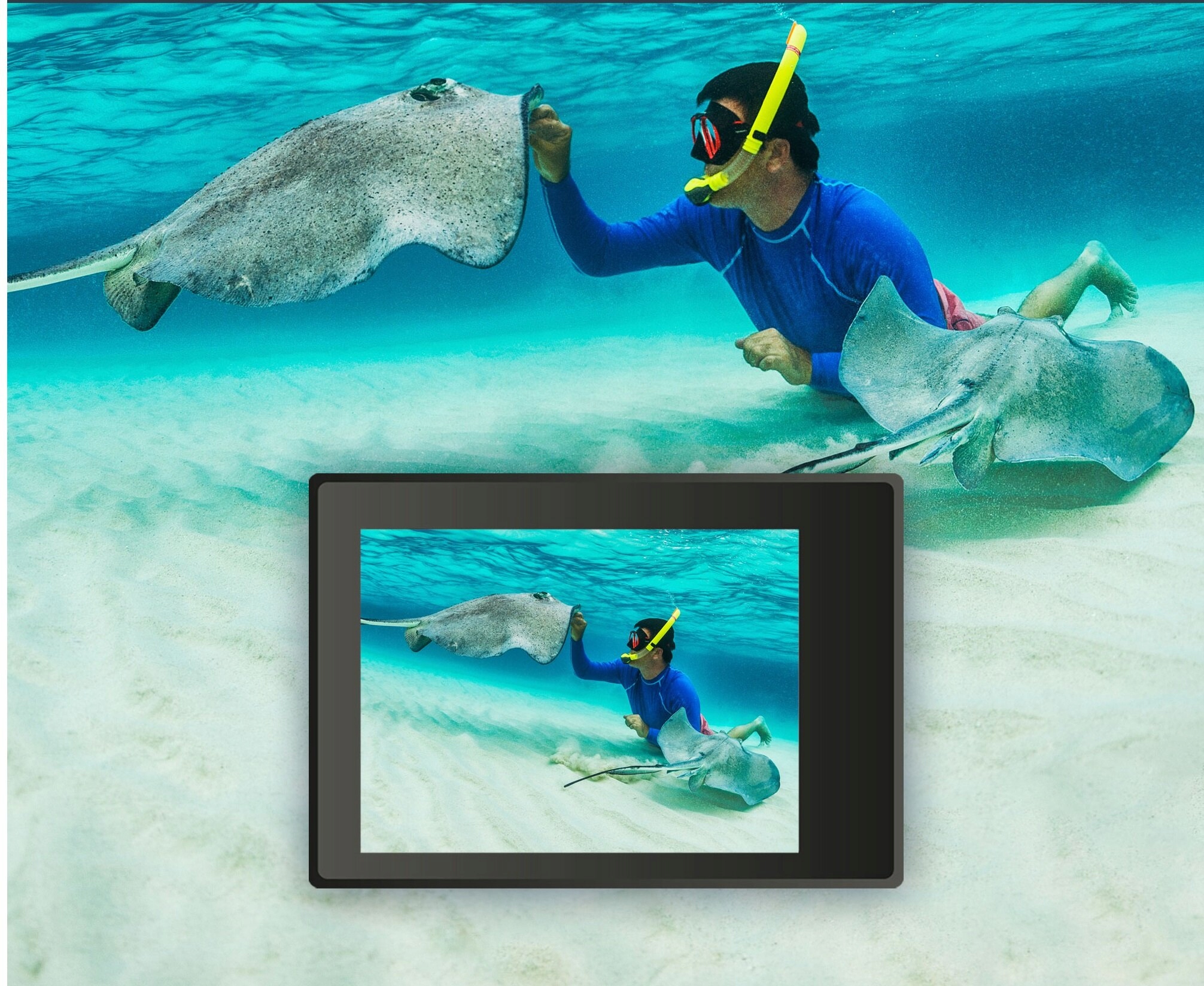 Завдяки вбудованому та практичному 2-дюймовому дисплею ви зберігаєте відповідну деталізацію зображення та маєте повний контроль над своїми відео та фотографіями. Ширококутний об’єктив 140° забезпечує фантастичні краєвиди. Завдяки вбудованій функції Wi-Fi ви можете легко підключити камеру до мобільних пристроїв і ділитися відео з друзями по всьому світу.