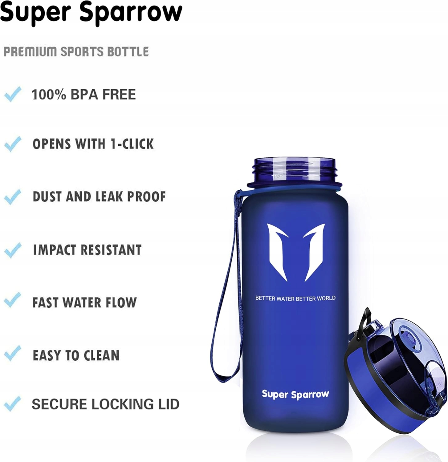 Пляшка для напоїв Super Sparrow є 100% герметичною та герметичною. Захисний замок запобігає випадковому відкриттю під час носіння в сумці чи рюкзаку.