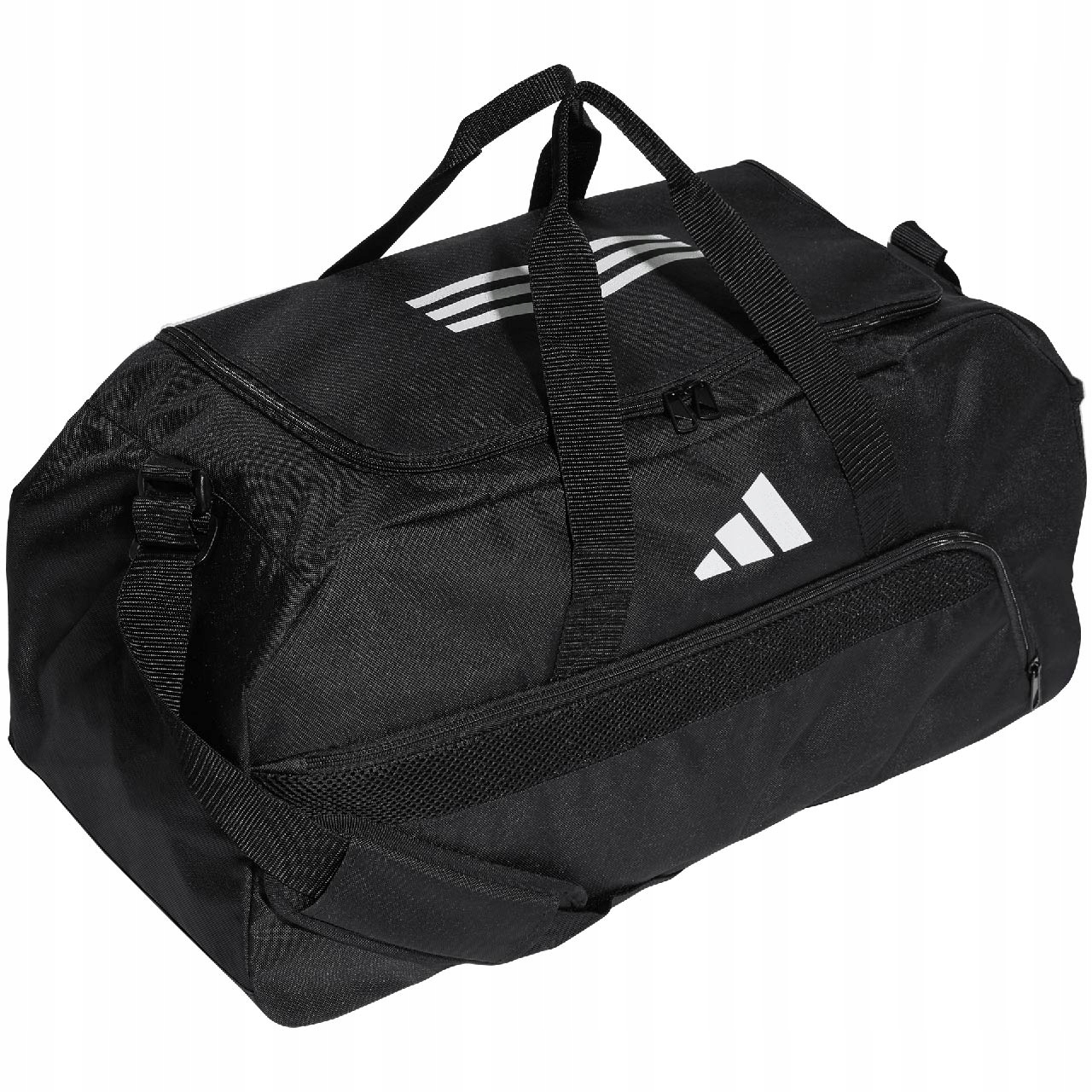 Більше того, ви можете сховати дрібні предмети, які хочете мати під рукою, у бічній сітчастій кишені. Регульований плечовий ремінь має накладку, яка зробить перенесення важких речей більш зручним. Крім того, дві плетені ручки можуть полегшити транспортування. Сумка також має вентильовану кишеню спереду, ідеально підходить для зберігання взуття або брудного одягу. Класичний чорний дизайн доповнений контрастним логотипом виробника. Тренуйтеся стильно та візьміть сумку Adidas.