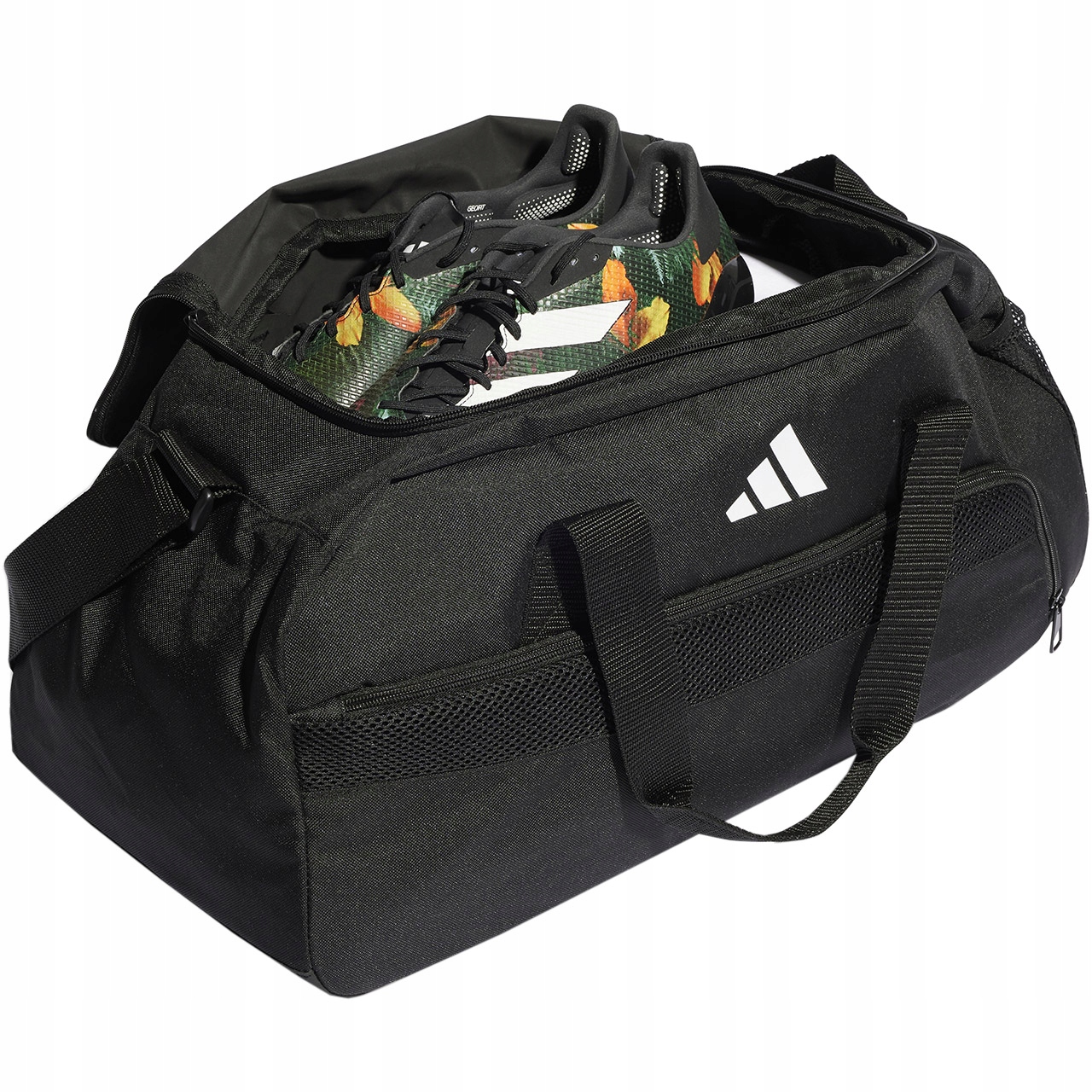 Спортивна сумка Adidas пропонує практичне та зручне зберігання для тренувального одягу, футбольного взуття, рушника та багатьох інших корисних речей. Більш того, він підійде як ручна поклажа, коли ви плануєте коротку поїздку з друзями або їдете у відрядження. Конструкція, яка сприяє ефективній організації, виготовлена з міцного матеріалу, отриманого в процесі переробки, тож ви також захищаєте природні ресурси навколишнього середовища. Основне відділення оснащене двосторонньою блискавкою, що дозволяє легко знайти потрібні речі. Вентильована передня кишеня на блискавці допоможе вам упорядкувати дрібні речі, які ви хочете мати під рукою. Ви можете покласти пляшку води або енергетичні закуски в сітчасту кишеню збоку. Довгий регульований плечовий ремінь з текстильною накладкою забезпечує комфортне носіння сумки на плечі, а короткі плетені ручки забезпечують міцний хват сумки в руці. Якщо ви активна людина або часто подорожуєте, ви знаєте, наскільки важлива ідеальна розстановка спорядження, тому вибирайте чорну спортивну сумку Adidas.