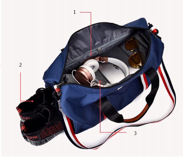 - Велика місткість і компактні розміри - ви можете зручно розмістити свій тренувальний костюм та інші аксесуари, такі як смартфон, документи, ключі, книги, одяг, взуття, нотатки, рушник, шльопанці, гель для душу тощо, у відділенні на блискавці, що дозволить вам безпечно зберігати свої цінні речі.