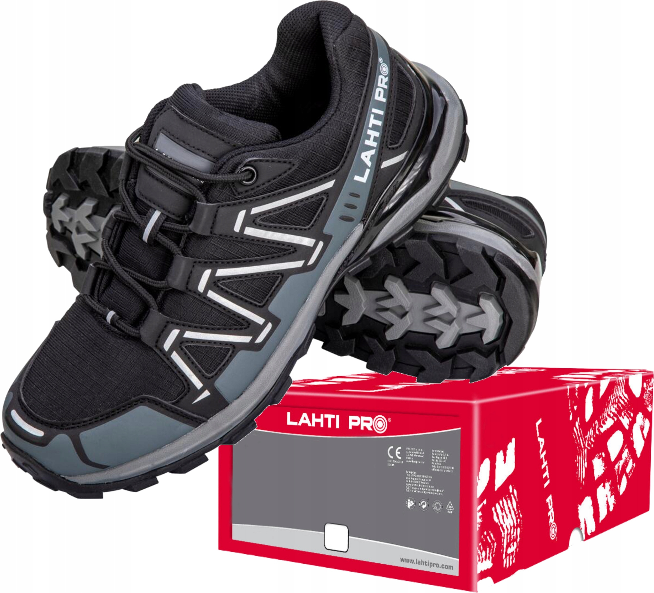 Чоловіче робоче взуття Lahti Pro, модель L30434, виготовлено з водонепроникної тканини ripstop. Підкладка, яка є одним з найважливіших елементів у взутті завдяки прямому контакту зі стопою, виготовлена з сітчастої тканини. Підкладка робочого взуття, яку зазвичай називають устілкою, є змінною. Гумова підошва з протиковзкими властивостями на керамічній основі - стандарт безпеки O2 - і глибокий протектор з сучасним дизайном забезпечують високу стійкість взуття і підвищують комфорт використання. Чоловіче робоче взуття модель L30434 має антистатичні властивості. Відповідно до стандарту SRA робоче взуття має закриту п’яту, обмежену водопроникність і поглинання, а також поглинання енергії в п’ятковій частині. Додатково взуття оснащене світловідбиваючими елементами для покращення видимості. Взуття має категорію безпеки O2 SRA і відповідає положенням стандарту EN ISO 20347:2011. Робоче взуття Lahti Pro L30434 має декларацію CE, взуття відноситься до другої категорії засобів індивідуального захисту.