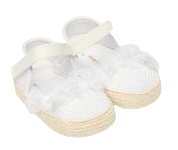 Еспадрільї для новонародженого, зручні, універсальні та легко поєднуються з повсякденним стилем. Зовнішня частина виконана з комбінованих матеріалів. Взуття з внутрішньою підкладкою та внутрішньою підошвою з дихаючої бавовни. Регульована застібка на липучці, яка гарантує ідеальне прилягання до стопи. Цей товар упакований у коробку з лінії Newborn, ідеально підходить для особливих випадків.