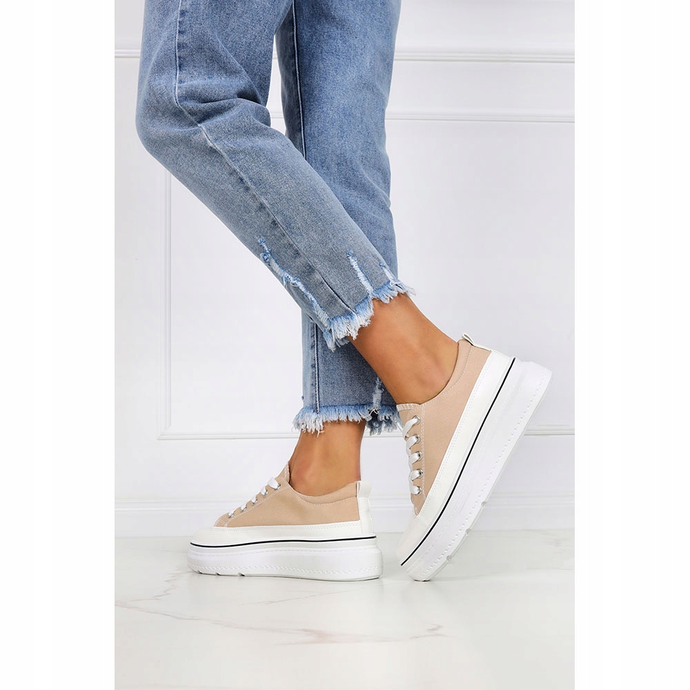 Кросівки кріпери на платформі бежеві, спортивне взуття на шнурівці Casu BL228P