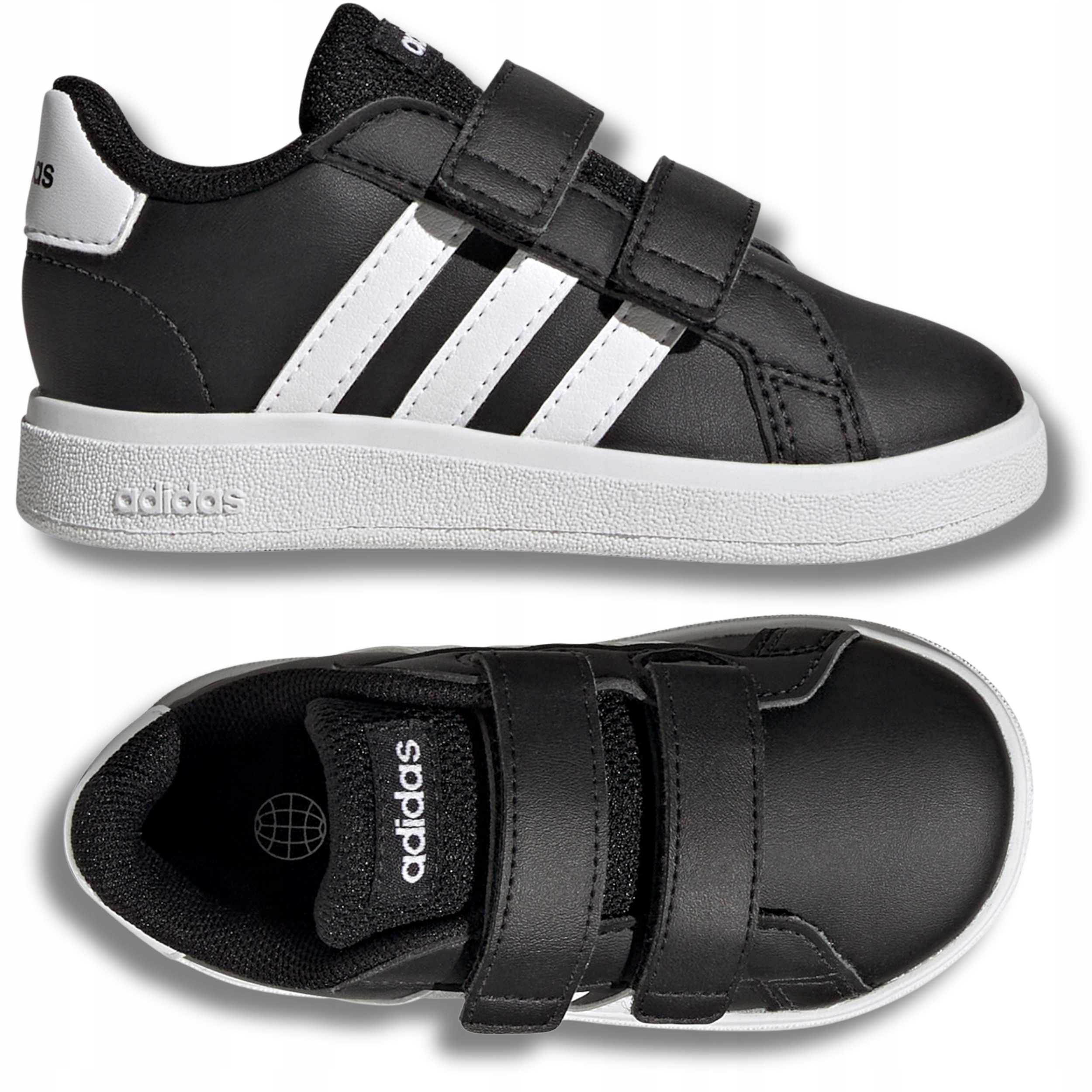 Спортивні дитячі взуття Adidas Light Grand Court Зручний липучок Чорний 25
