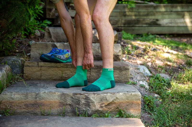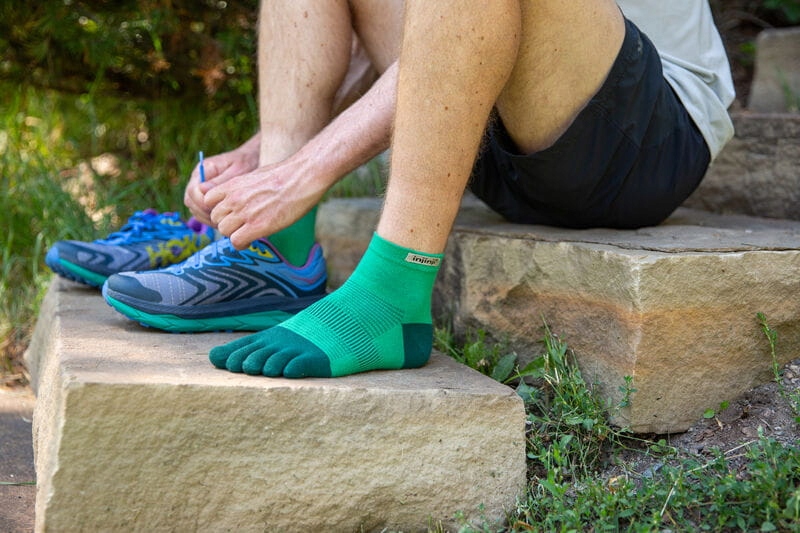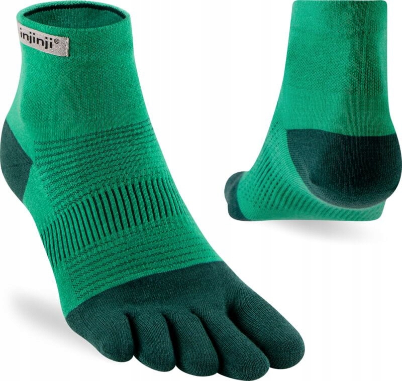 Серія Run — це інноваційні продукти, які забезпечують необмежений рух стопи та зменшують тертя шкіри до шкіри, яке є однією з основних причин появи пухирів. Розроблений для оптимального комфорту, ефективності та захисту, дизайн із п’ятьма пальцями забезпечує чудове відведення вологи, тоді як волокна COOLMAX® EcoMade забезпечують цілеспрямовану підтримку склепіння, а повітропроникність забезпечується сітчастою верхньою частиною та обтічним дизайном, спеціально адаптованим для лівої та правої стопи. Бігові шкарпетки Injinji добре витримують щоденні тренування та прослужать на великій відстані, захищаючи ваші ноги практично в будь-якому взутті.