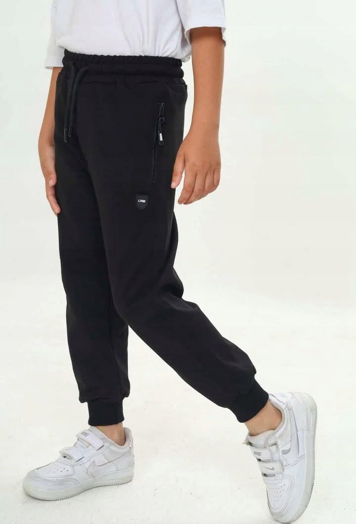 Чорні спортивні штани для хлопчика з двома бічними кишенями, що застібаються на блискавку.