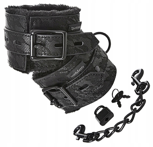 Пропозиція для дам, які люблять приємні, довговічні предмети, поєднуючи декоративні якості з корисністю. Чому для дам? Що ж, дизайн цих наручників полягає в тому, що для них досягнуть лише жінки. Поверхня прикрашена, що нагадує мереживо на сексуальній нижній білизні та зсередини м'якого хутра. Насправді ви можете спокуситись і носити наручники як прикраси - як браслет. Їх можна розстебнути, вони виглядають красиво, сексуально і гостро ...
