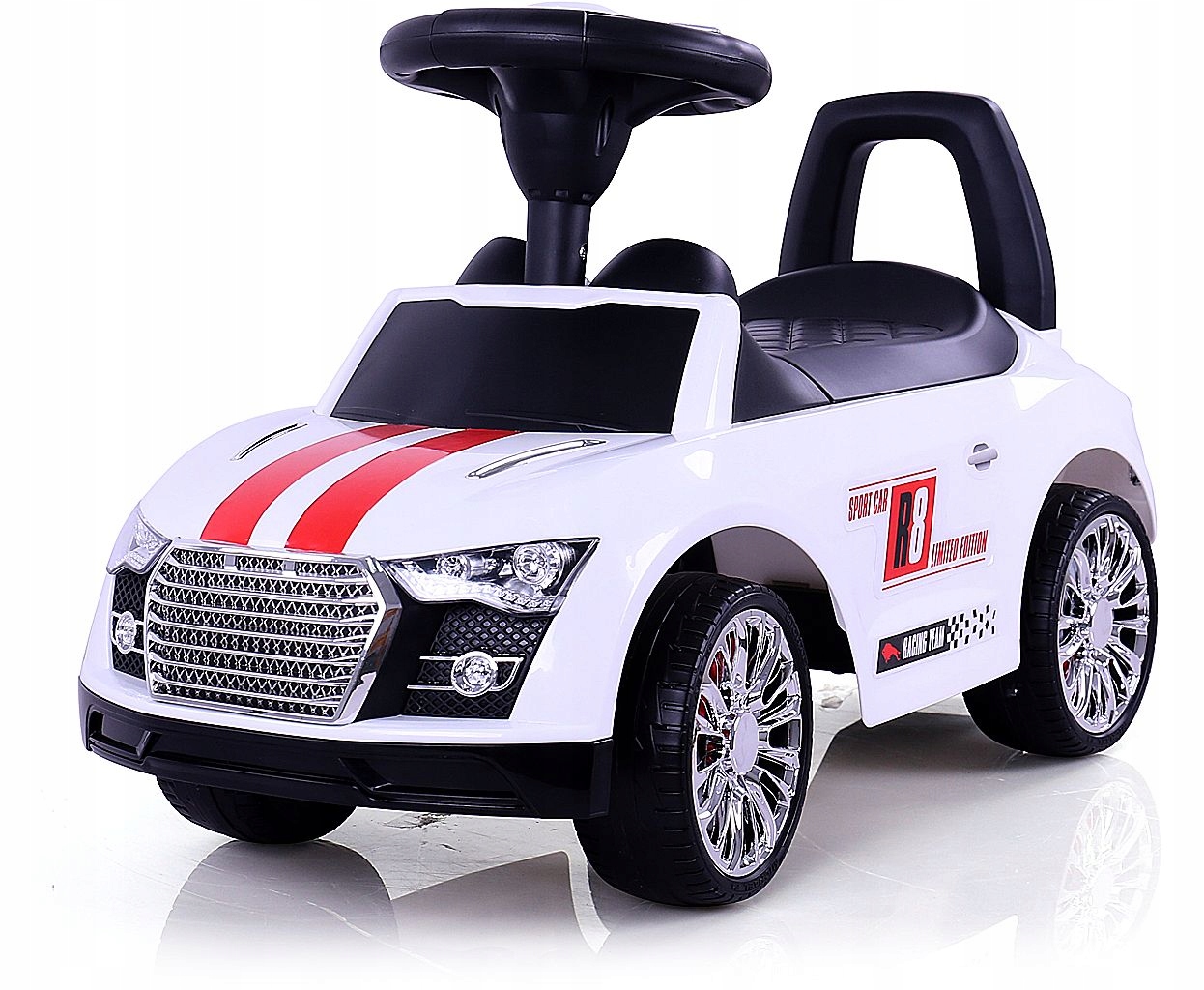 Райд -спортивна їзда була зроблена в сучасному стилі та в широкому діапазоні кольорів. Він багатий. Це "справжній" гоночний автомобіль, кермо, обладнане музичною панеллю та рогом, і шасі з заставою. Це забезпечує дитині велику радість від водіння, розвиває почуття рівноваги та загальну ефективність руху. Автомобіль має легку пластикову структуру та ергономічні форми, що забезпечує дитині безпечну забаву. Весело через фізичні навантаження - це чудовий спосіб підтримати належний розвиток наших дітей.