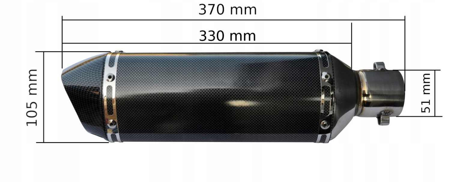 - довжина вихлопу: 370 мм (ДОВЖИНА ВДАНА БЕЗ ПЕРЕХОДНИКА, ПЕРЕХОДНИК ВИКОРИСТАНИЙ ДОВЖИТЬ ВИХЛОП НА 3 СМ)