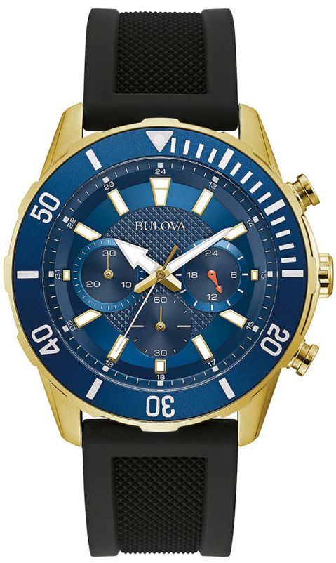 Циферблат має три маленькі циферблати, які виконують функцію секундоміра у формі хронографа, який вимірює час до 30 хвилин з точністю до 1/1 секунди. і функція 24-годинного відображення часу. Додатковою перевагою чоловічого годинника BULOVA 98A244 є функція luminova, коли стрілки та покажчики покриті люмінесцентним шаром, завдяки якому вони будуть світитися вночі після потрапляння світла. Варто підкреслити, що синій циферблат покритий міцним мінеральним склом.