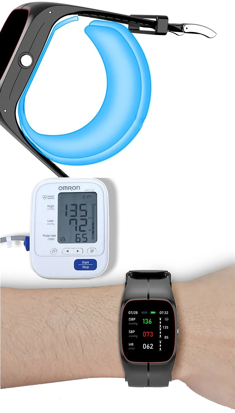 Ремінець із подвійною функцією не тільки тримає годинник на зап’ясті, але й допомагає вимірювати артеріальний тиск, підвищуючи точність показань.