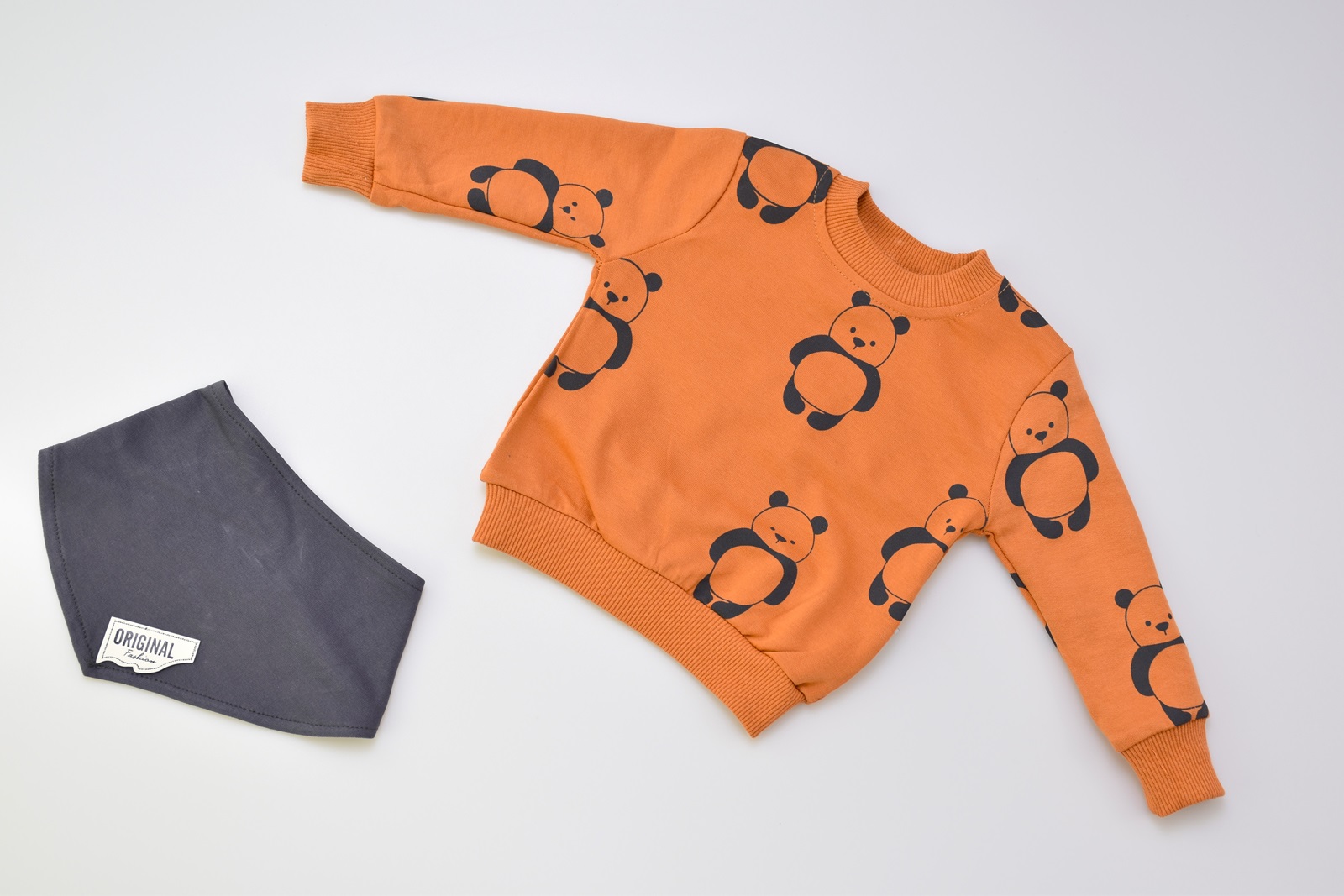 - Коричнева толстовка з іграшковим ведмедиком пандою.