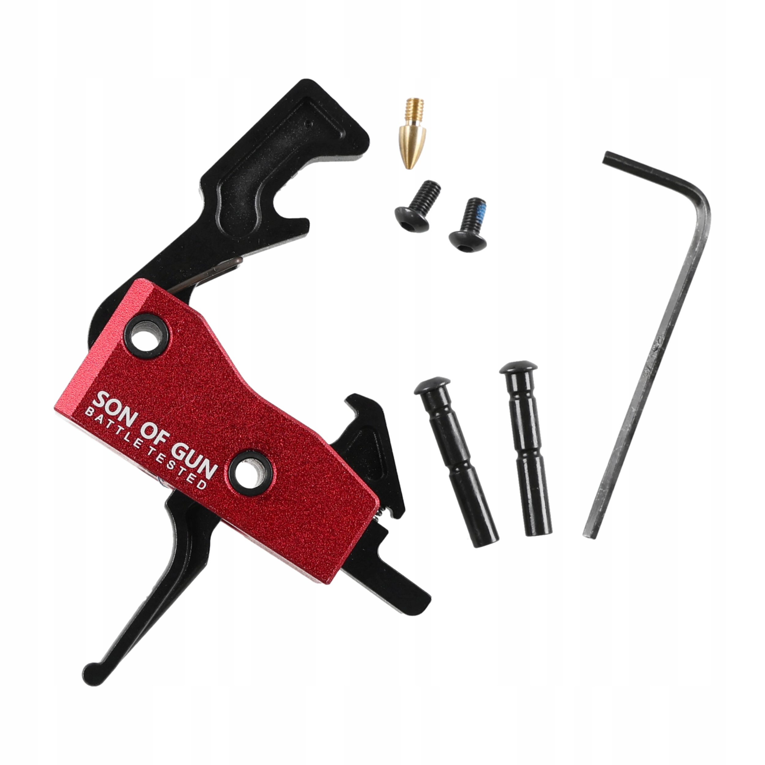 Ударно-спусковий механізм Son of Gun, призначений для використання в гвинтівках AR-15. Елемент у цьому варіанті характеризується плоскою гранню язичка і кутом 90 градусів до осі ствола при зведенні. Це дає нам краще відчуття, полегшує рівномірне витягування та відповідну підтримку, що потребує меншого зусилля під час роботи з механізмом. Конструкція виготовлена з фрезерованого алюмінію, що гарантує поєднання відповідної жорсткості та малої ваги.