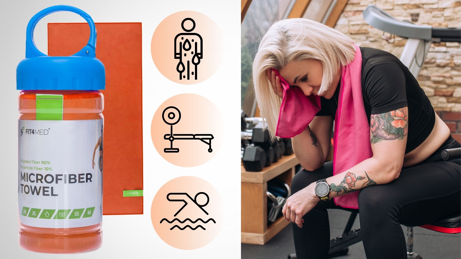 ➡️FIT4MED Охолоджуючий спортивний рушник з мікрофібри, захист від UV50+