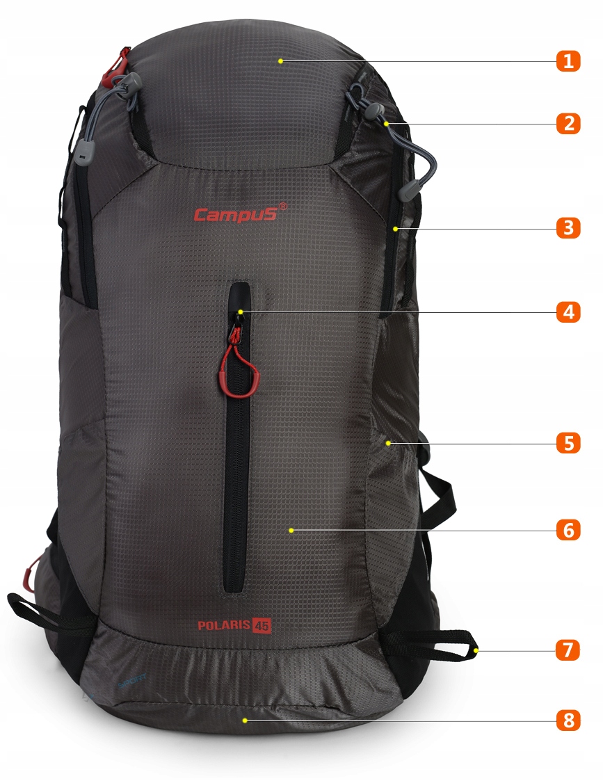 Брендований туристичний рюкзак від Campus. Модель «POLARIS 37» - ідеальне рішення для коротких гірських походів, походів або як повсякденний рюкзак. Завдяки вдосконаленій системі перенесення AIR-FLOW на основі загнутої всередину рами в поєднанні з вентиляційною системою Air-Con і плечовими лямками анатомічної форми рюкзак дуже простий в носінні, зручний і Ви не будете відчувати втоми навіть після тривалого походу. Дуже місткий - в нього можна помістити багато необхідних речей - має одне основне відділення з великим завантажувальним отвором, що відкривається на «U»-подібну блискавку. Також є додаткові камери з внутрішніми кишенями. Солідно виготовлений, добре продуманий і оброблений - кожна деталь вишукана. Виготовлений з високоякісних матеріалів, таких як: поліестер Rip-Stop Rhombus 600D. Цей матеріал характеризується дуже високою стійкістю до стирання і розриву. Рюкзак має регульовану місткість за допомогою шнурків і ременів, внутрішнє відділення для ємності для води та дощовик.