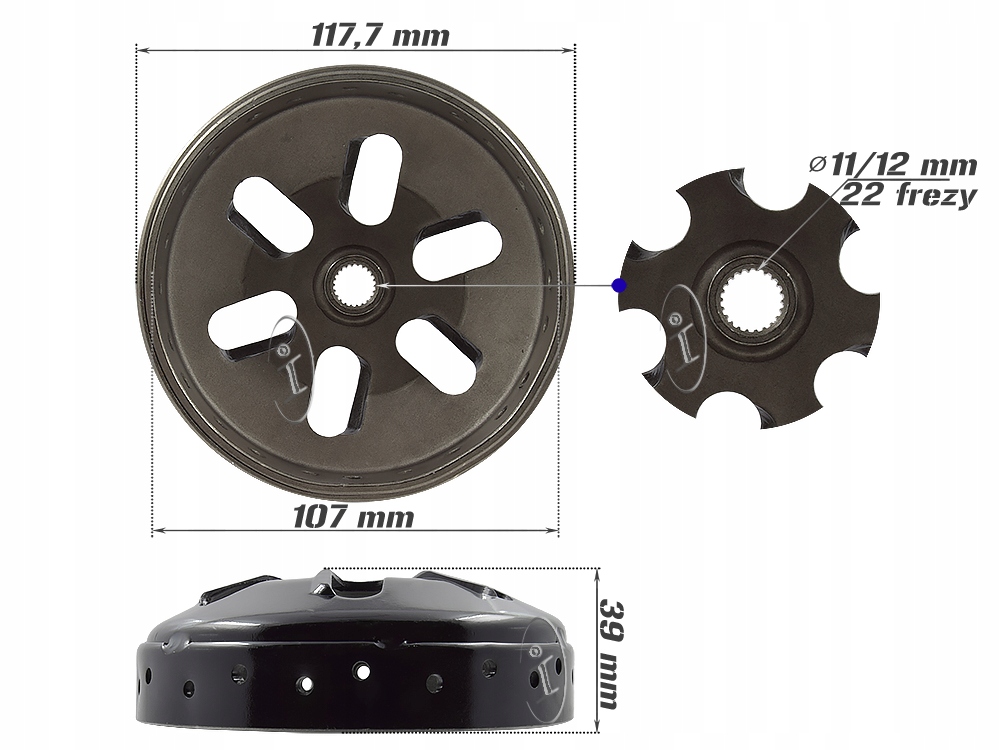 - ДЗВОНОК ЗЧЕПЛЕННЯ / БАРАБАН ВЕНТИЛЯЦІЇ 107 мм ВИСОКА ШВИДКІСТЬ