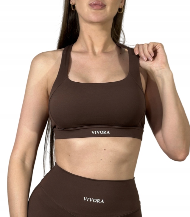 СПОРТИВНИЙ ТОП ЖІНОЧИЙ ДЛЯ ЙОГИ З ВИСОКОЮ ПІДТРИМКОЮ ГРУДЕЙ, КОЛІР КОРИЧНЕВИЙ, РОЗМІР M