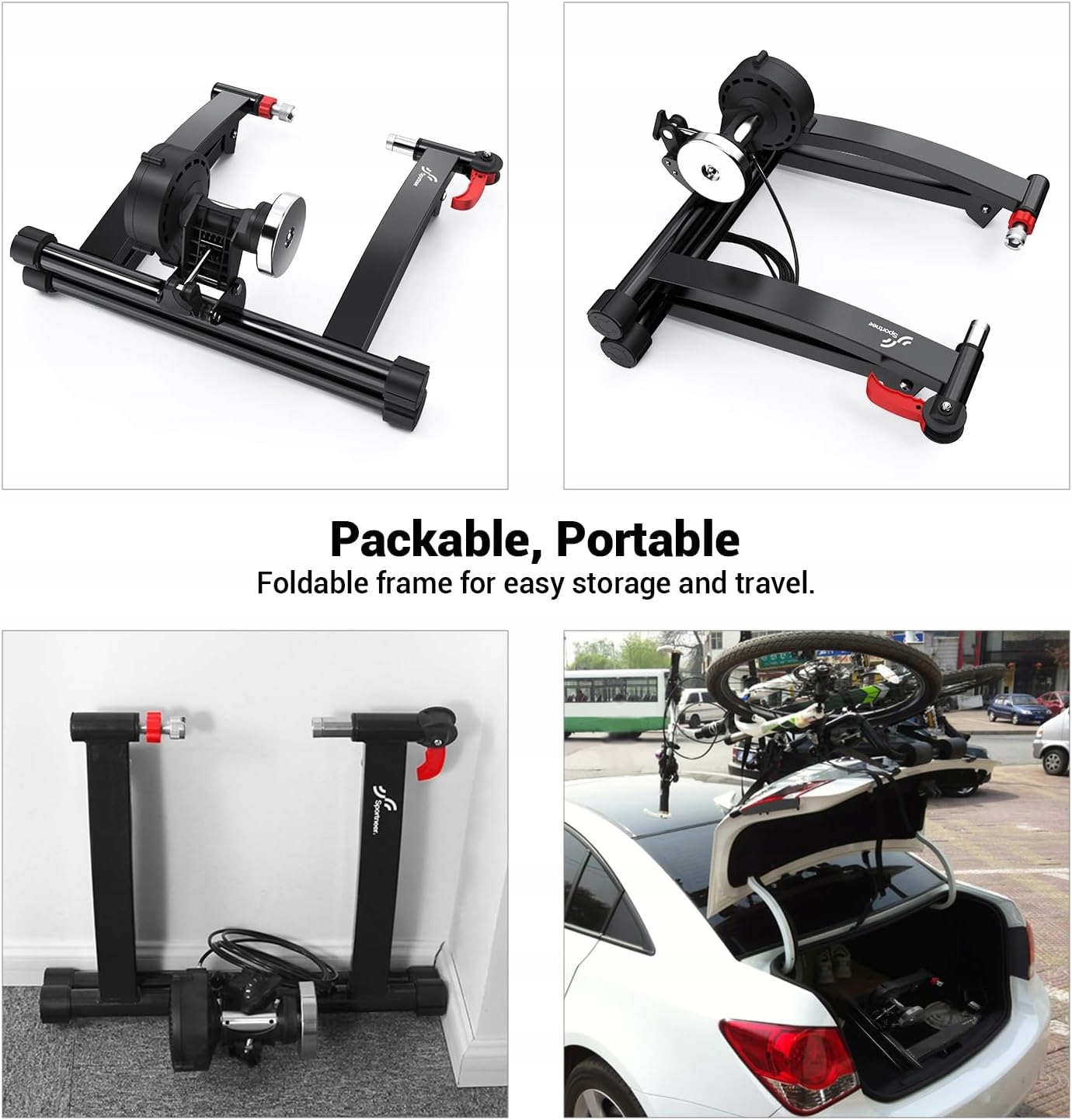 ➡ закінчуються виправданнями та потворною погодою! Тренер Sportneer - ідеальне рішення для тренувань їзди на велосипеді в кімнаті . Завдяки компактному, складному дизайну Ви можете тренуватися куди завгодно, і зрештою - покласти обладнання в кут. ·