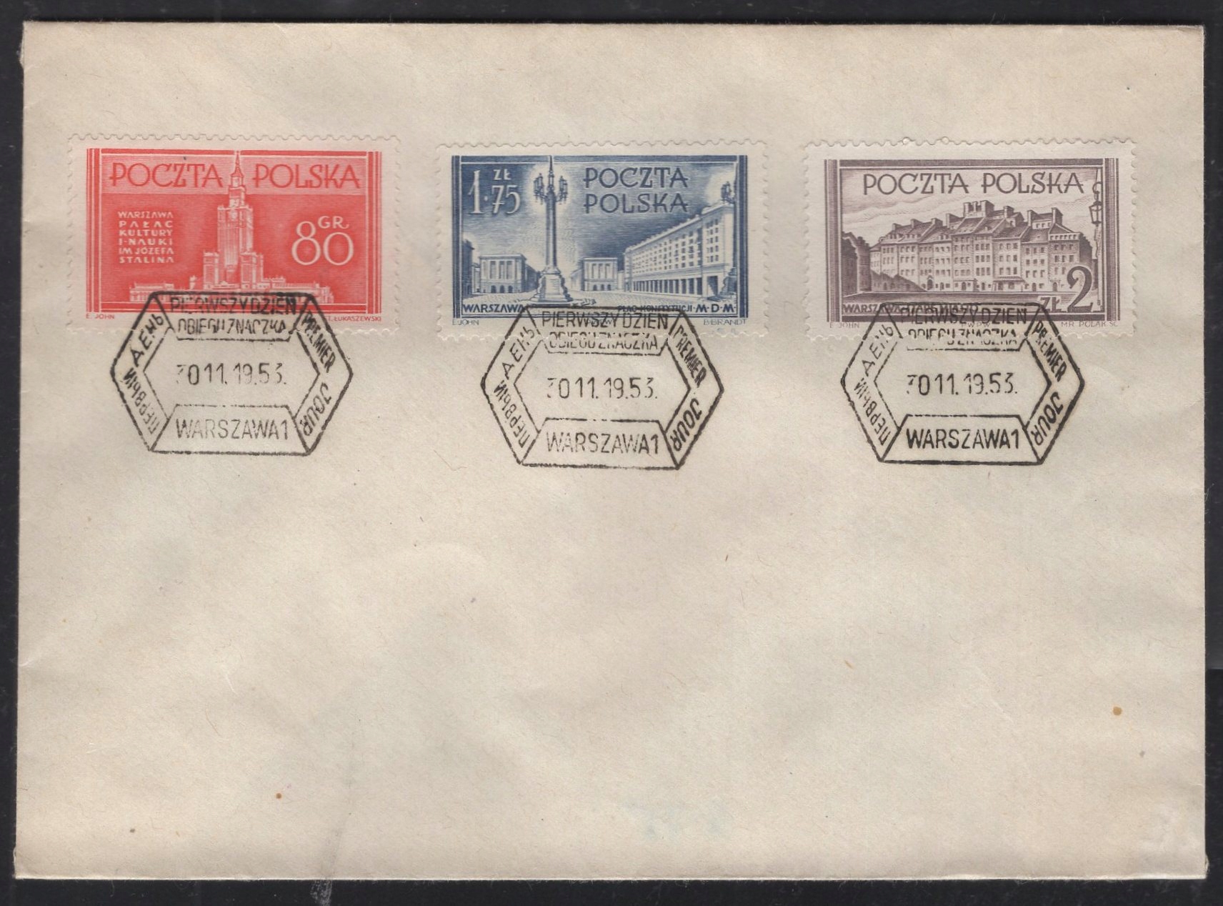 СПОРУДИ ВАРШАВИ , 1953 РІК, Ф. 686 - 688 FDC