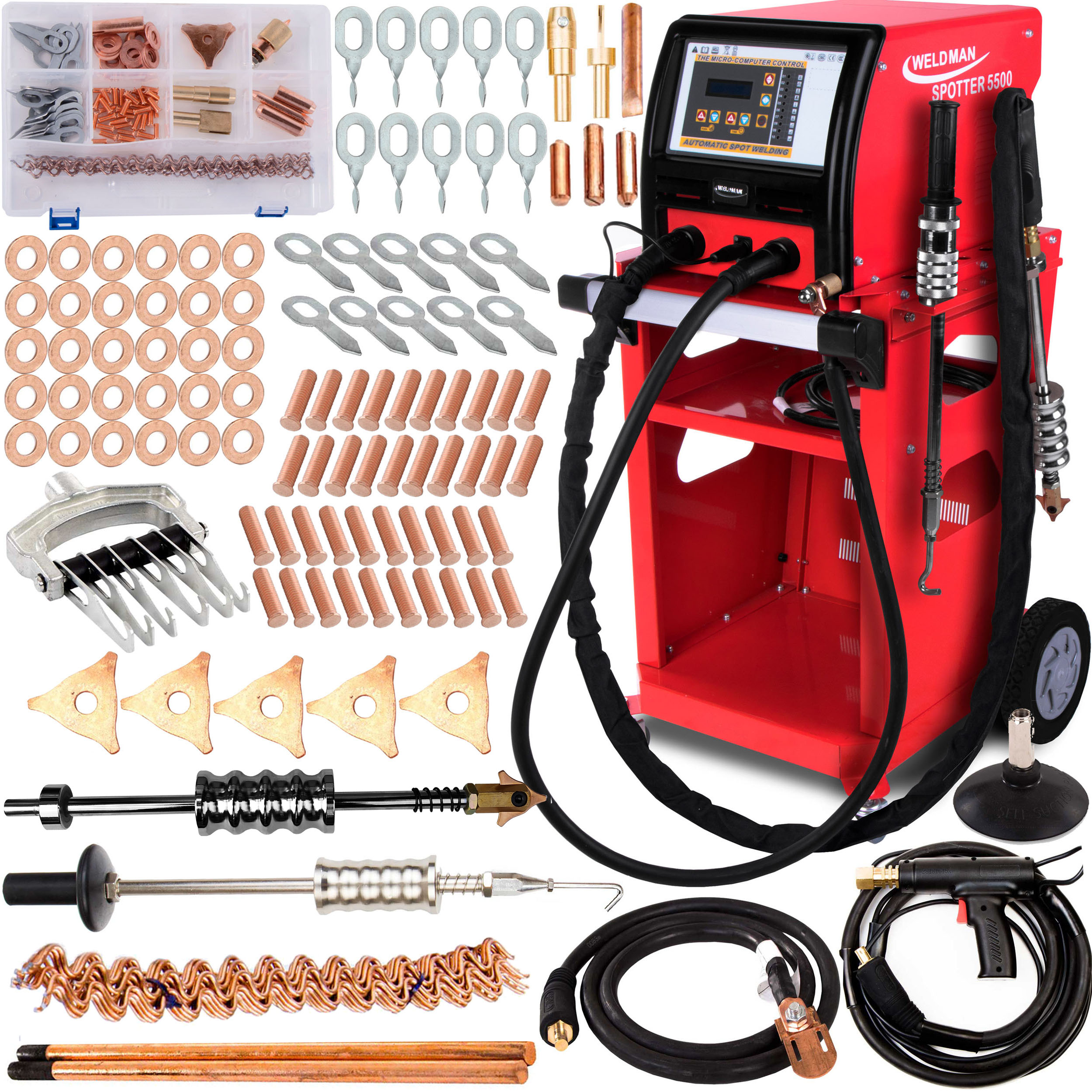 WELDMAN 5500 - це SPOTTER, який ідеально підходить для простого та швидкого кузовного ремонту автомобіля. Зварювальний апарат також ідеально підходить для латання, нагрівання, вибухання та розбухання листового металу. Великою перевагою WELDMAN 5500 SPOTER є його висока потужність 4200A. Додатковою перевагою є стабільна робота при збереженні всіх механічних властивостей елементів, над якими ми працюємо. Ще одна перевага — автоматичний вибір параметрів після вибору програми, додатково ми можемо налаштувати параметри вручну.