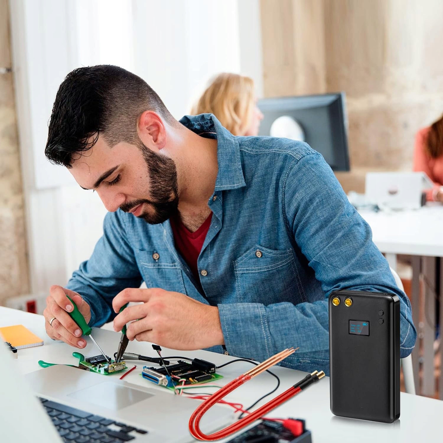 - Цей міні-апарат для точкового зварювання має вбудовану літій-полімерну батарею великої ємності 7500 мАг, яку можна повністю зарядити за 3 години.