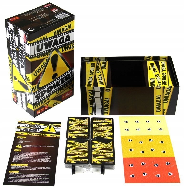 У грі Сповіщення про спойлер! Ваше завдання - вміло провести свою команду до фільму чи серіалу, вказаного на картці. Кожен заголовок містить список спойлерів, використання яких означає, що ви втрачаєте бали, тому будьте обережні, що ви говорите!