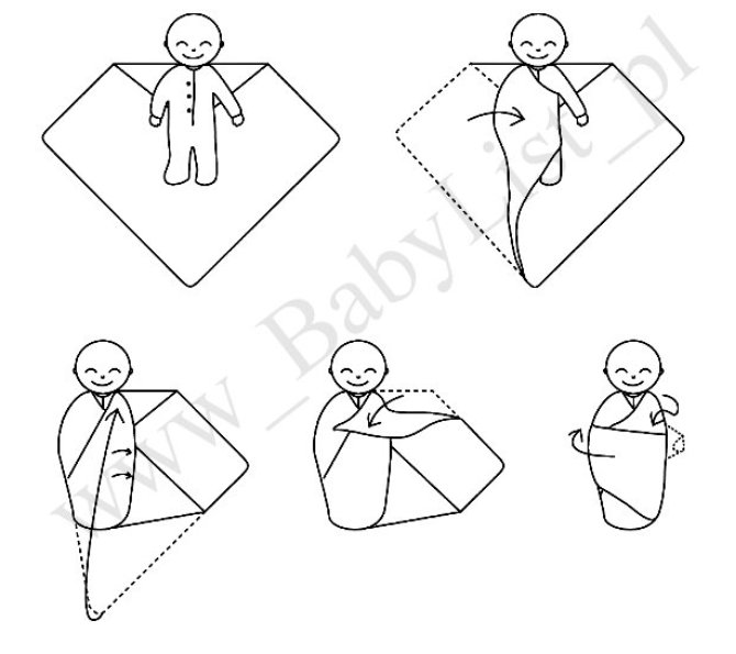 - Покладіть дитину на сповивання так, щоб її ручки збігалися з верхнім краєм сповивання.