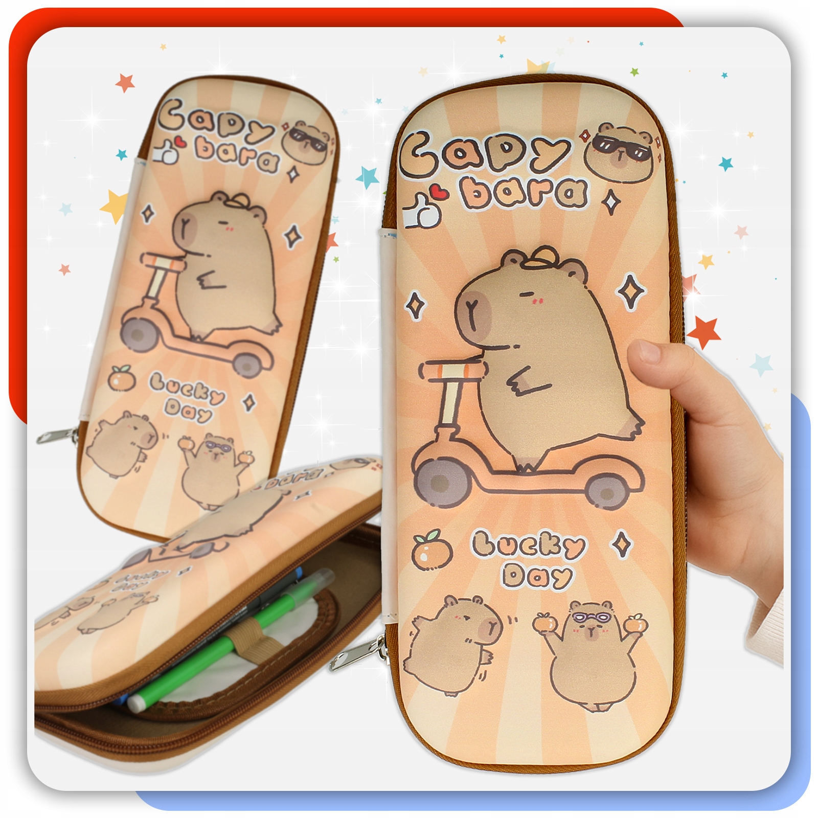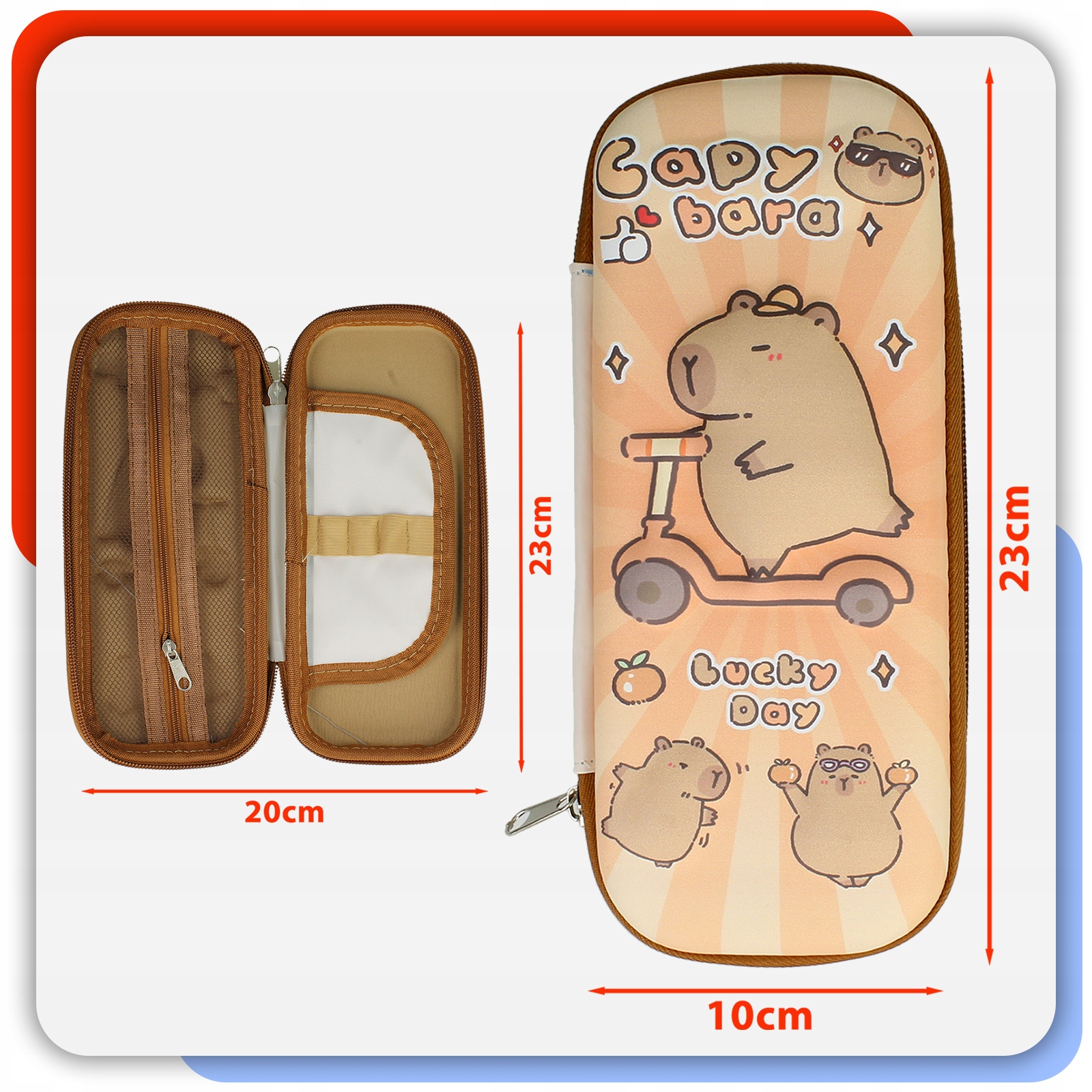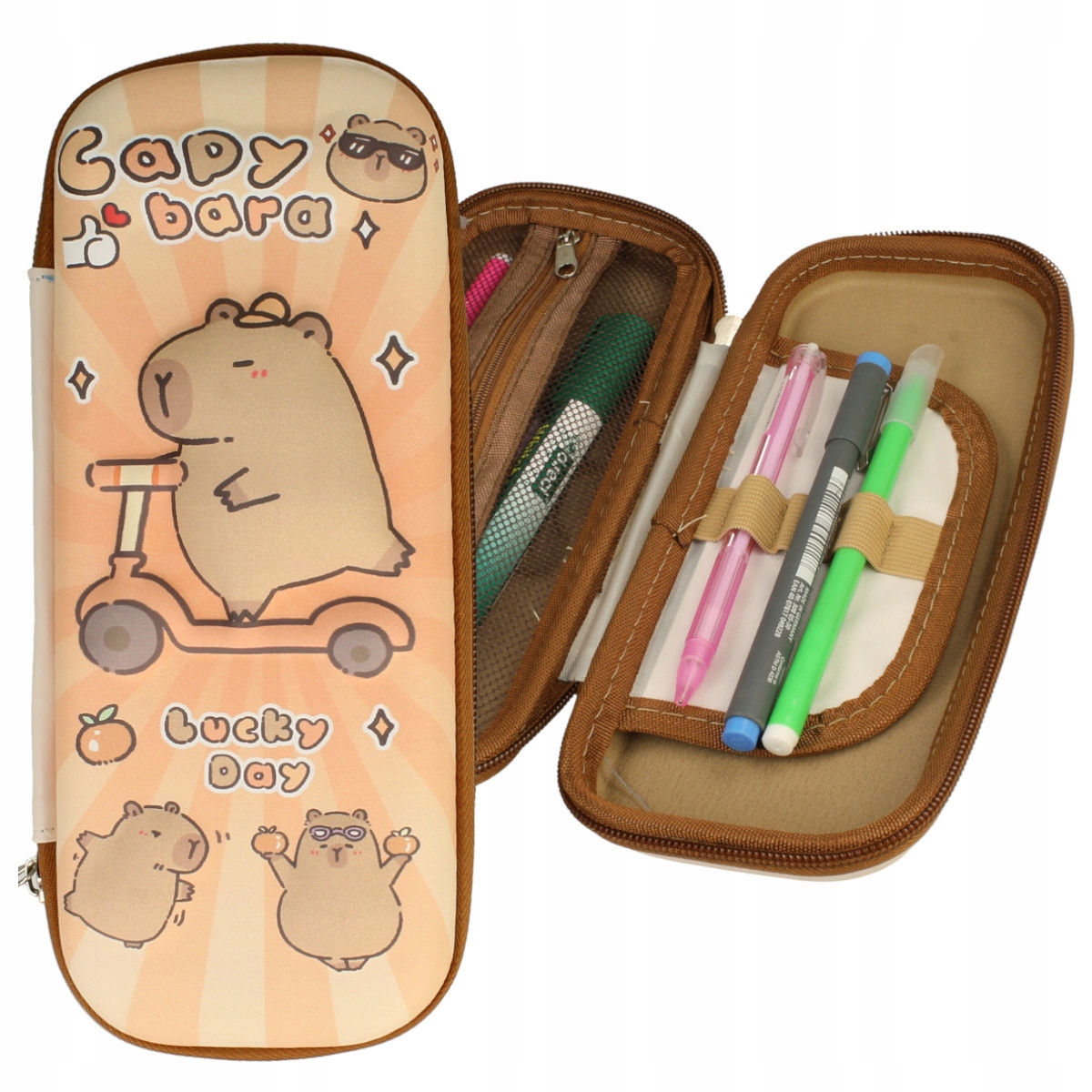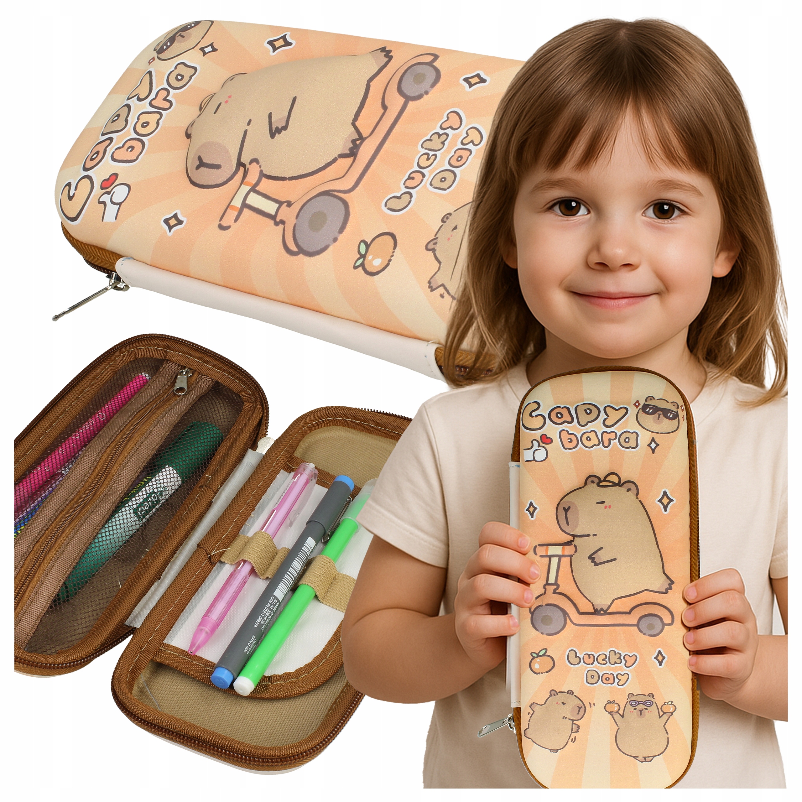 Цей чарівний корпус олівця з графіком Капібар - ідеальна пропозиція для кожної дитини, яка любить поєднання практичності та стильного вигляду. Корпус олівця ідеально підходить для школи та для класів мистецтва, поєднуючи функціональність з привабливим виглядом.