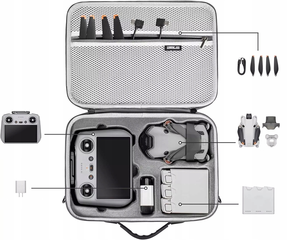 - ✔ розроблений для безпілотників dji mini 4 pro/mini 3 pro , може вмістити безпілотник, контролер, концентатор зарядки акумулятора та інші аксесуари.